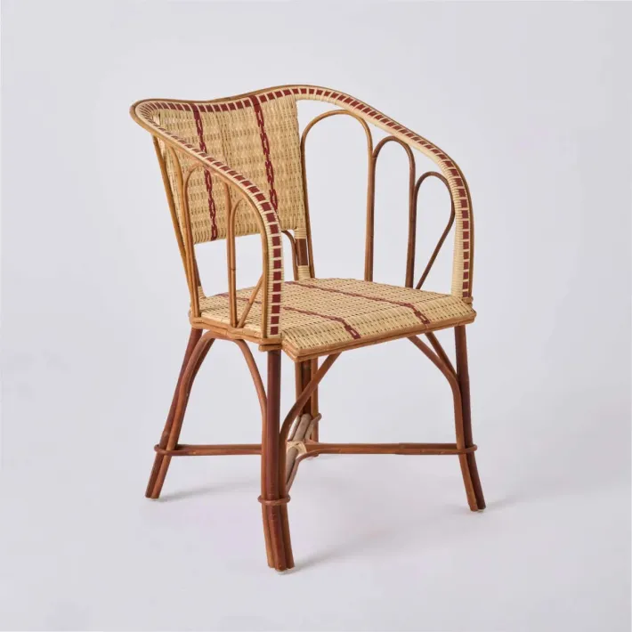 At the turn of the last century, rattan was in its golden age, as it was so easy to use that it lent itself to the scrolls, arabesques and intertwined shapes that were the hallmark of the Art Nouveau style. The charm of the afternoons under an arbour, walks in the botanical garden and cafés on the main boulevards is now part of our French way of life. KOK MAISON, with its Bagatelle collection, is now re-releasing the furniture that goes with it. Each model in this collection has its own design and its own lines, as if it had been individually aged, but the choice of a common finish ensures is coordinated with the others. A quick nod to the techniques of the time: the finishing nailing is entirely in brass.
