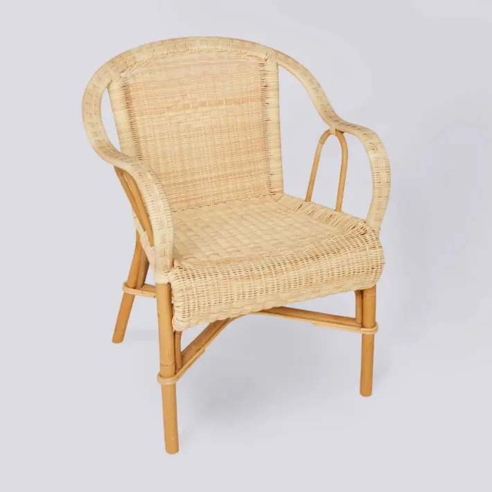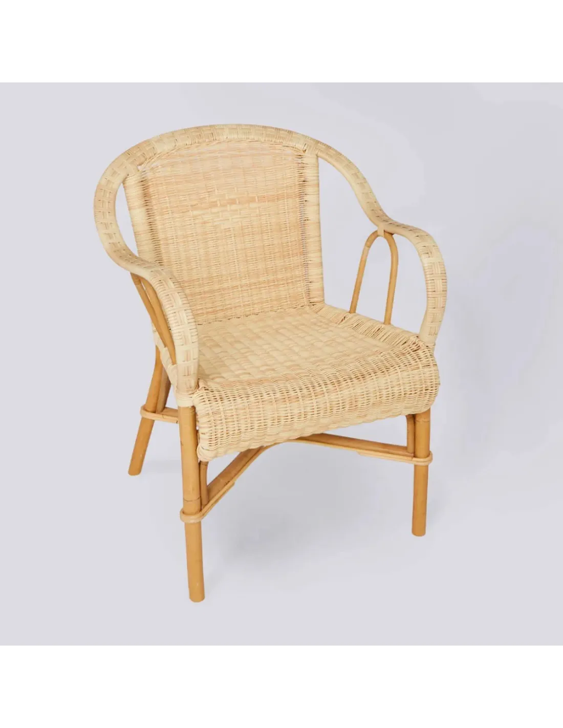 The Guinguette armchair in rattan, here in its low-back version, is THE iconic model of French rattan. Very popular in our countryside in the early 1900s, it was sold at the time by peddlers who went from village to village. Light, robust, and inexpensive, it was sometimes the only element of comfort in modest homes: to knit, smoke, listen to the radio, read by the fire, or chat under the apple tree... Comfortable, simple and robust, it is still fashionable today. It can be used as an occasional chair, but its seat height allows it to be used also around a dining table. This version has a resin weaving that almost perfectly imitates the natural rattan fiber. It will be perfect for outdoors and intense use.