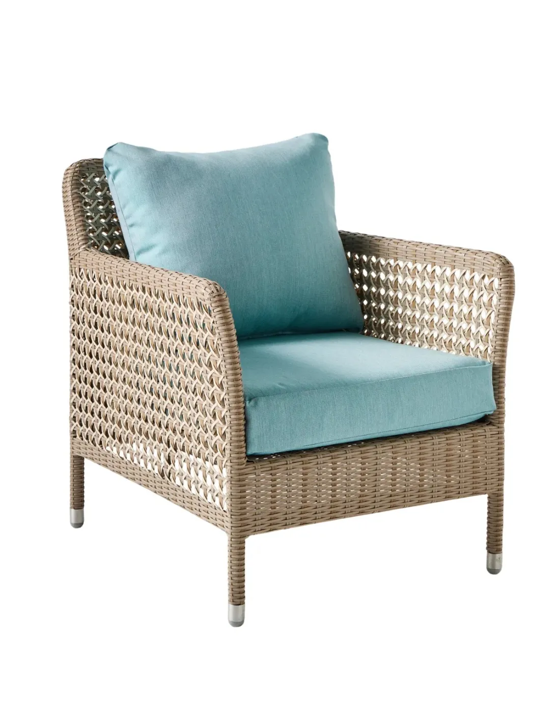 The Antibes collection's Recif-colored resin is woven in three shades of grey-beige, which intermingle in a camaieu pattern.