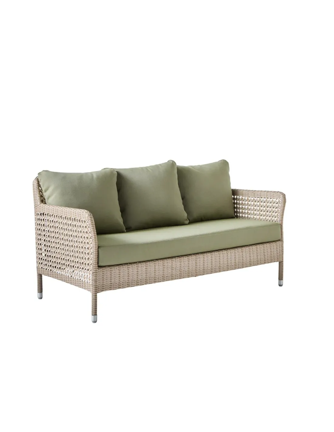 The Antibes resin 2-seater sofa combines sober lines and refined “double-skin” weaving, in the very spirit of KOK MAISON. We pay homage to a centuries-old rattan craft tradition, the famous “French-style” open cane, by adapting it to the spirit of the times: wide-opening “meshes” for a more contemporary look, the use of a robust, easy-care outdoor resin, and a precious harmony of 3 beige grays in a shade inspired by the different natural colors of rocks at low tide. The slim armrests and backrest reduce the chair's bulk without sacrificing comfort. This revisited classic will fit in anywhere, even in small spaces, by the sea, but also in the setting of a characterful stone residence, a relais-château, a city terrace or a mountain chalet.... The Antibes 2-seater sofa is practically a 2 1/2-seater. Its 133 cm seat width means it can accommodate 2 very comfortable people, or 3 more tightly packed. We've included 3 back cushions as standard.