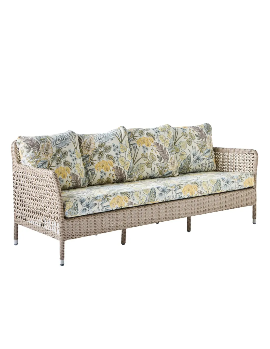 3-seater outdoor sofa Antibes récif fabric bouquet grey