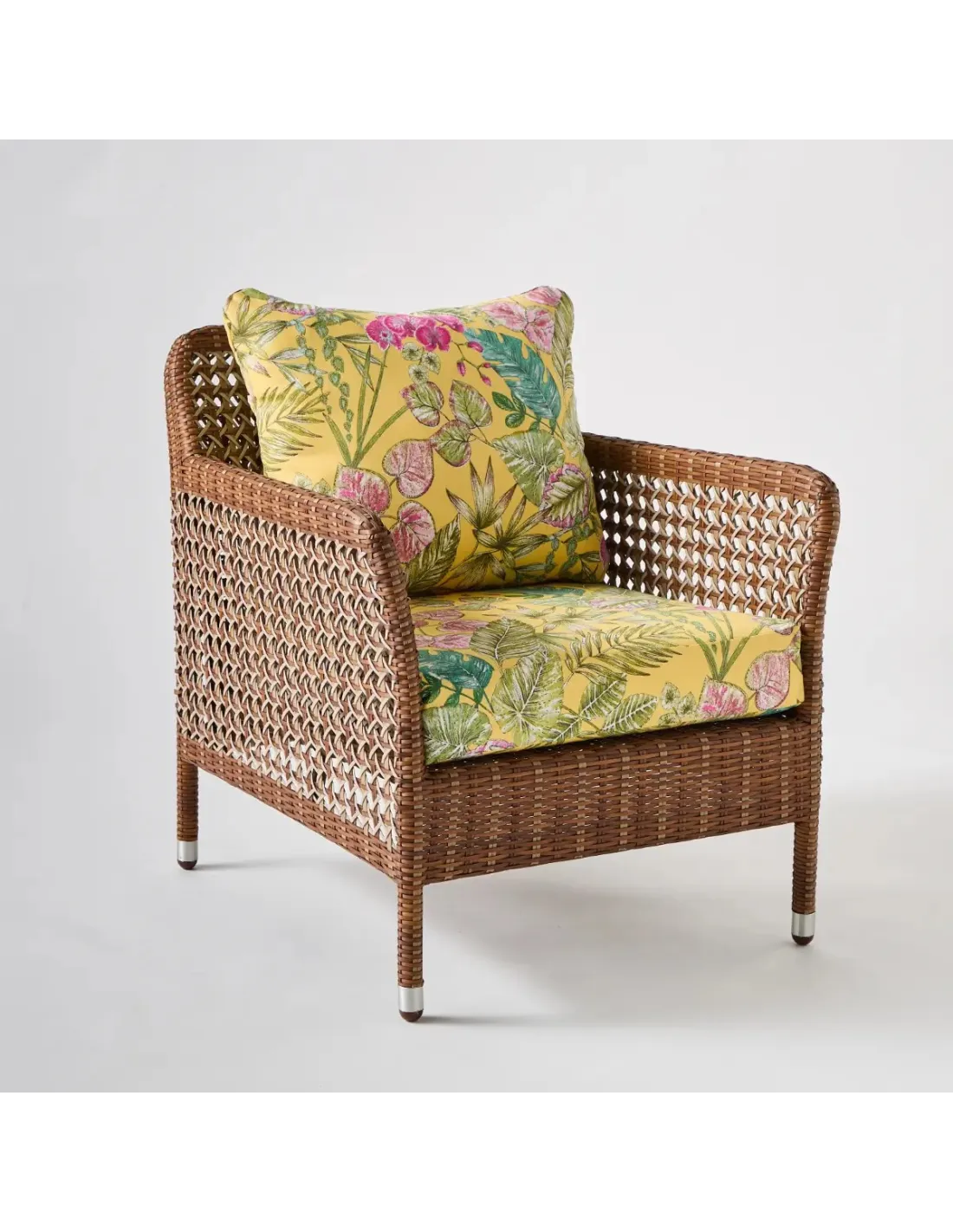 Resin armchair ANTIBES LATERITE fabric bouquet yellow
