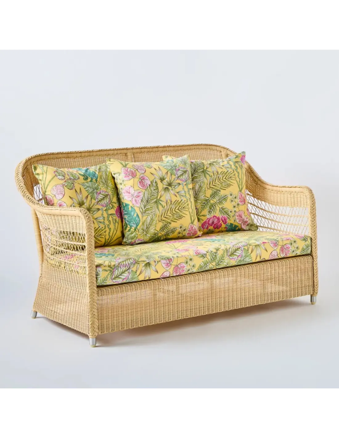 Natural Biarritz 2-seater sofa with bouquet yellow fabric