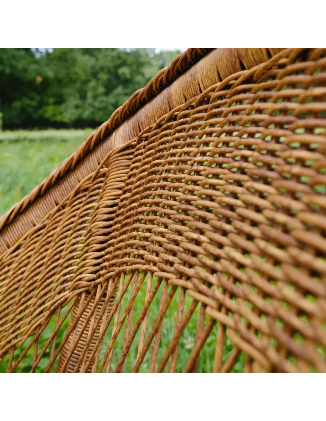 The BIARRITZ 2-seater outdoor rattan sofa is presented here in chataigne-colored resin with our selection of outdoor fabrics. The BIARRITZ collection is inspired by the rattan and willow furniture found under porches and in the conservatories of late 19th-century bourgeois homes. In particular, they feature the typical “openwork” weave, with diamond-shaped patterns in the open parts. The use of a resin that is as fine as it is resistant further enhances the impression of lightness and refinement of this exclusive, lace-like weaving. The Biarritz 2-seater sofa is practically a 2 1/2-seater. With its 125 cm seat width, it can accommodate 2 very comfortable people, or 3 more tightly packed. That's why we've included 3 back cushions as standard.