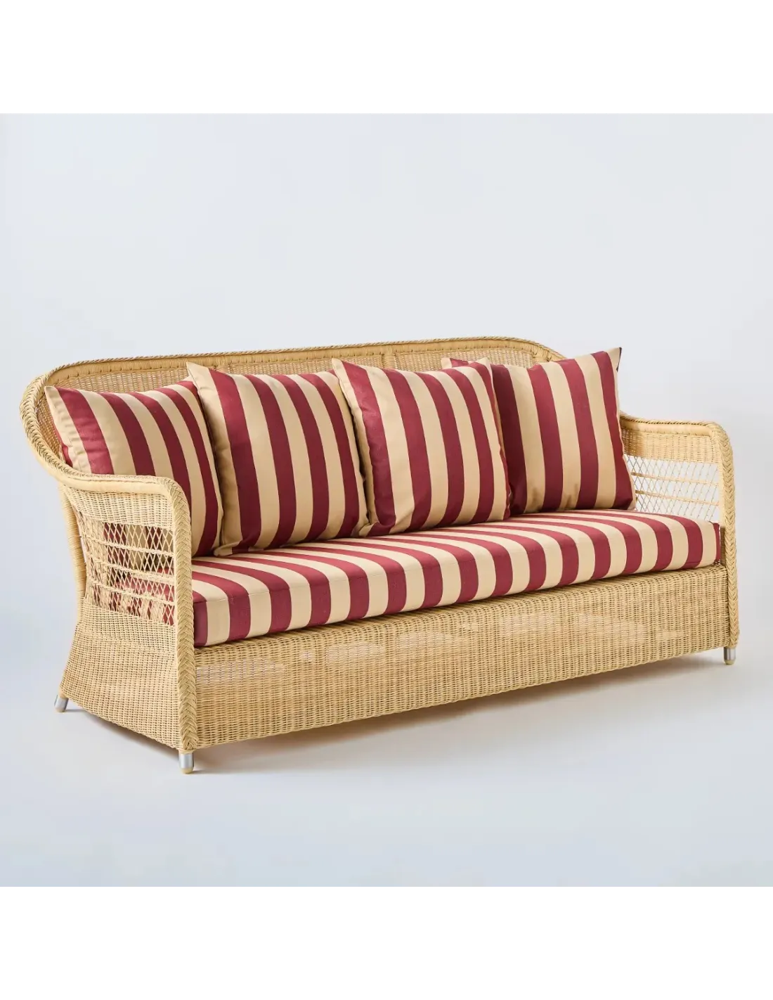 Biarritz 3-seater outdoor sofa in natural resin fabric with burgundy stripes