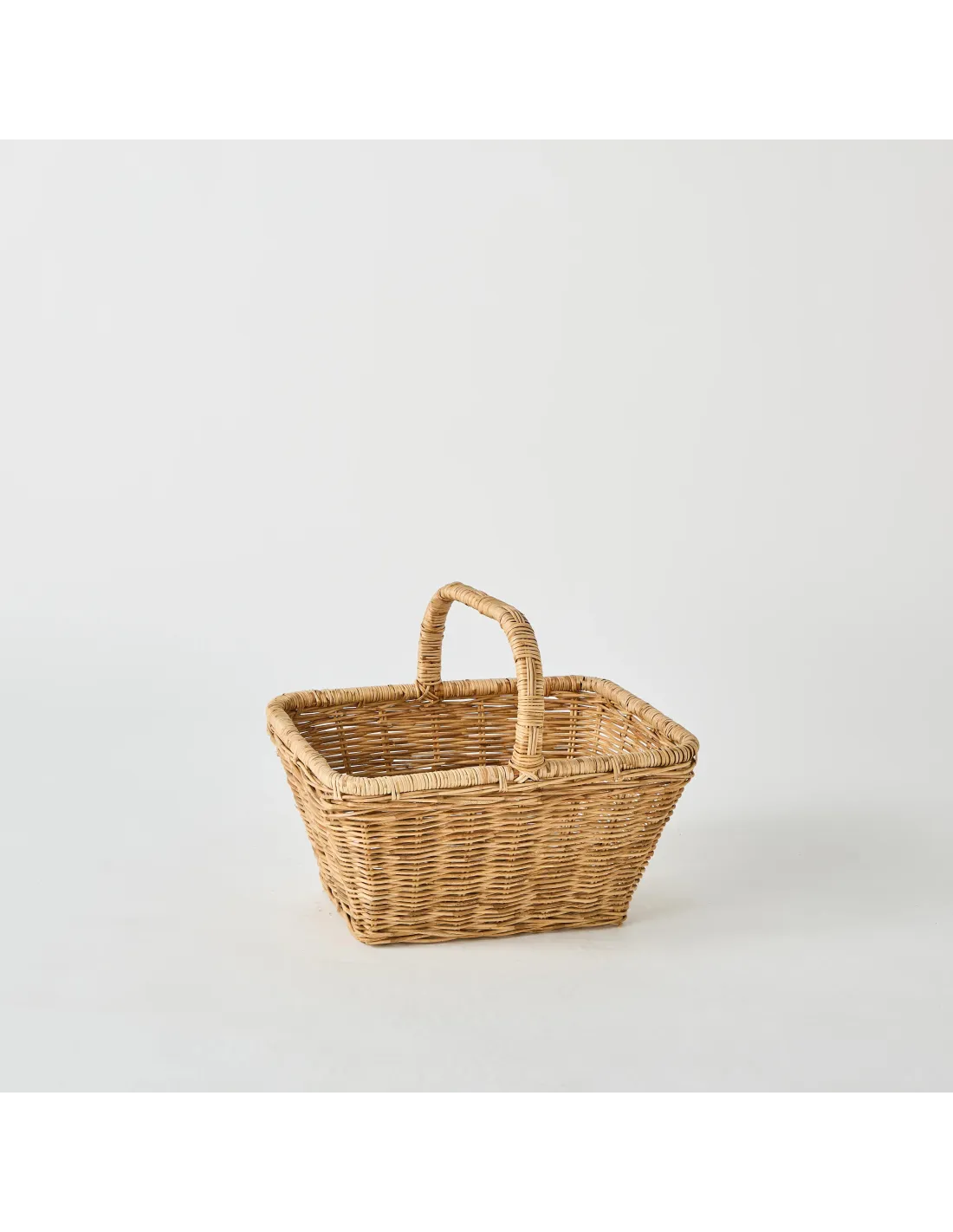 Natural rattan weave. Height 35 cm (with handle) 20 cm (basket only) x width 31 cm x length 40 cm. Weight 600 g. Made in Vietnam.
