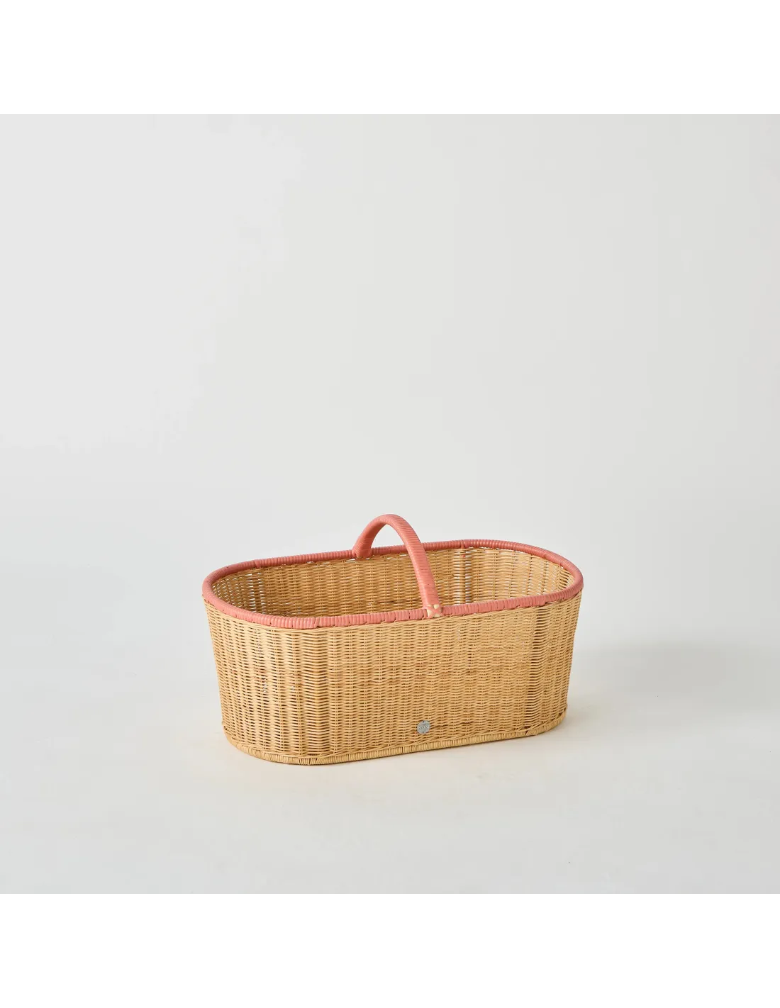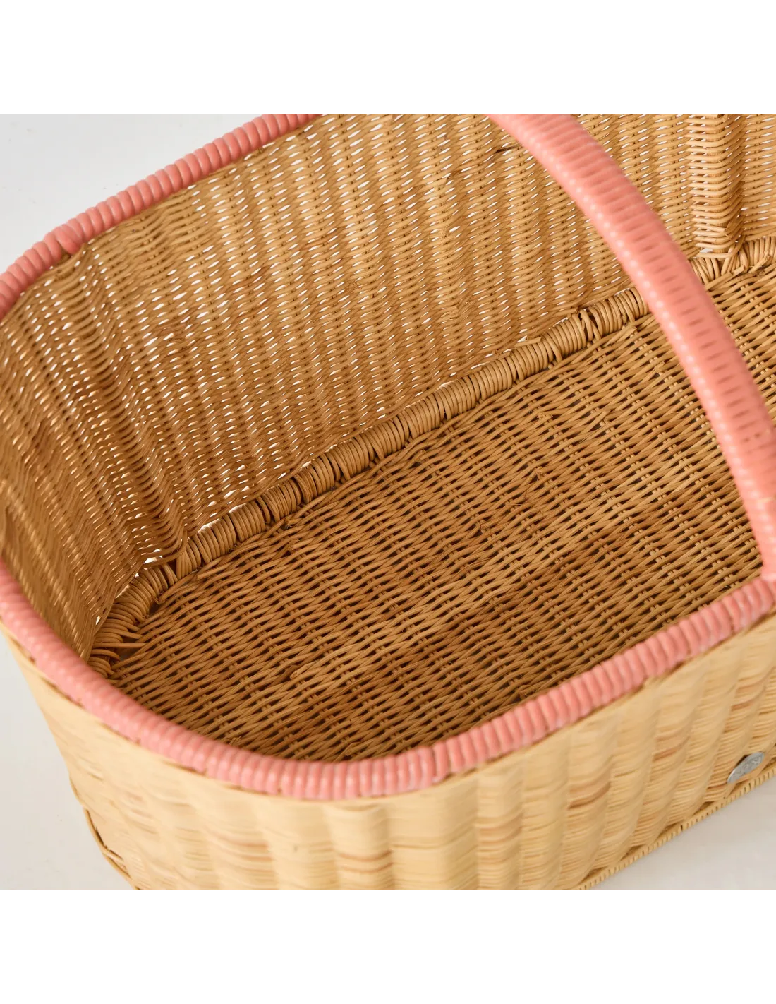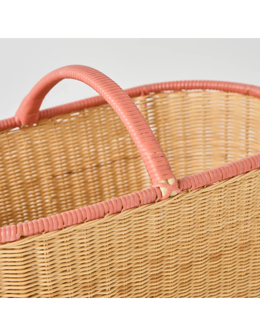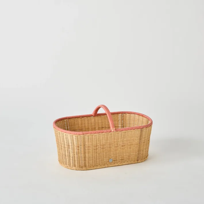 A beautiful piece that stands out for its fine weave and coral pink rim.