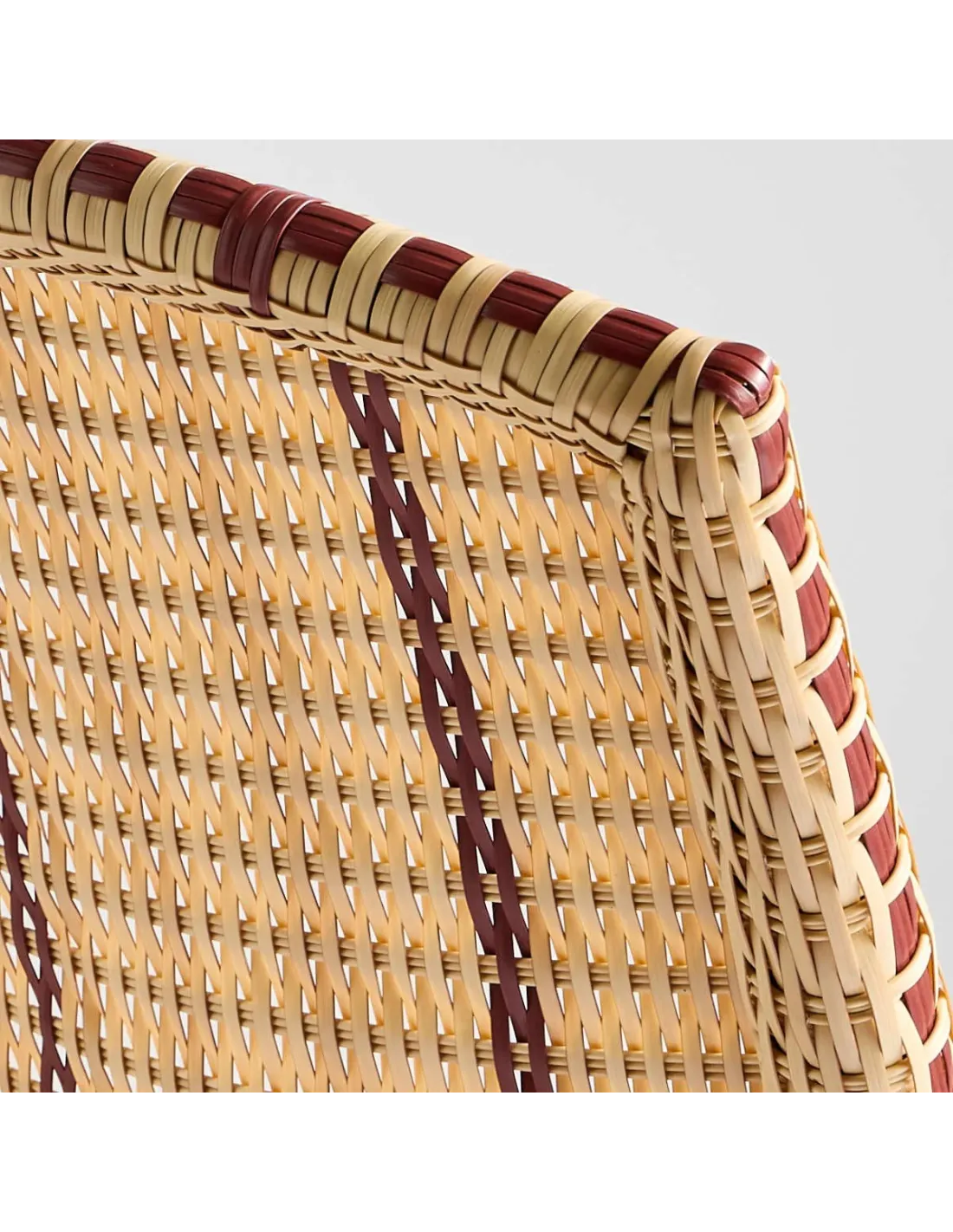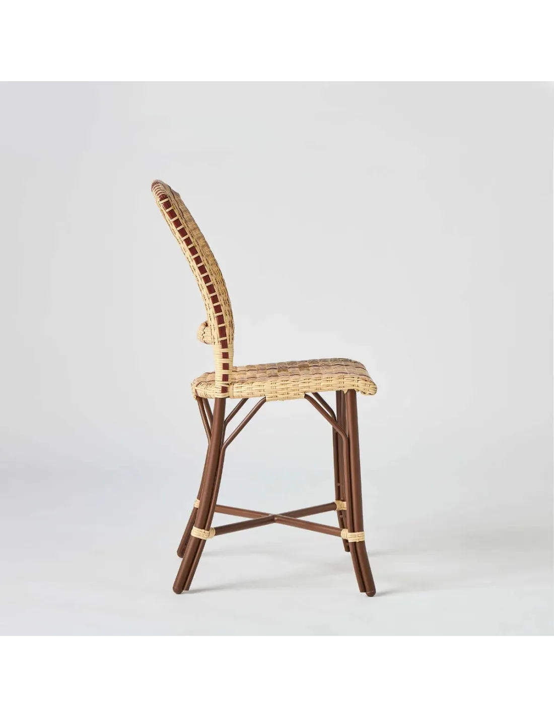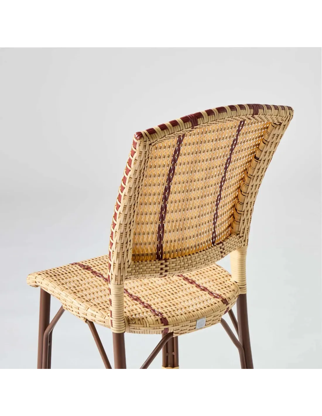The Art Deco style, which was in vogue at the turn of the 19th century, was full of curves, arabesques and plant motifs of all kinds, like the famous "Guimard" entrances of the Paris metro. The Belle Epoque garden chair is the direct descendant of the Bagatelle rattan chair, an emblem of the French art of living, with afternoons spent under the arbour, strolls in the botanical gardens and moments spent "in society" on the terrace of a brasserie on the Grands Boulevards. With the Belle Epoque woven resin chair, KOK MAISON pays tribute to this bygone era, preserving all its charm and adapting it for outdoor use. The Belle Epoque woven resin chair is a faithful reproduction of a period model, retaining all its characteristics: dark brown frame, red piping and wide curved backrest.