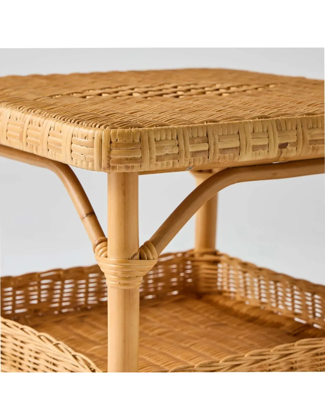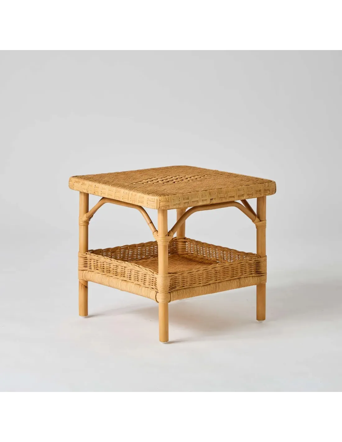 The Nantucket honey-coloured square rattan coffee table is made from several rattan by-products: cane, rattan pith and rattan splints. To put it simply, let's consider that the cane, the rattan stem with its bark, which is used to build the structure of the table, can then be peeled to remove the bark. Once calibrated and sorted, these very strong and flexible "laces" of bark will be used to make ligatures. This is what is called rattan "splints". The rattan cane without its bark can then be pushed through a drawing machine to produce regular cylindrical strands that will be used to weave the top of the tabletop and the lower magazine rack of the Nantucket honey-coloured square rattan coffee table. This is called rattan "pith". As cane, splints and pith are natural materials, it is normal to see slight variations in colour from one strand to another, which are part of the charm of the material.