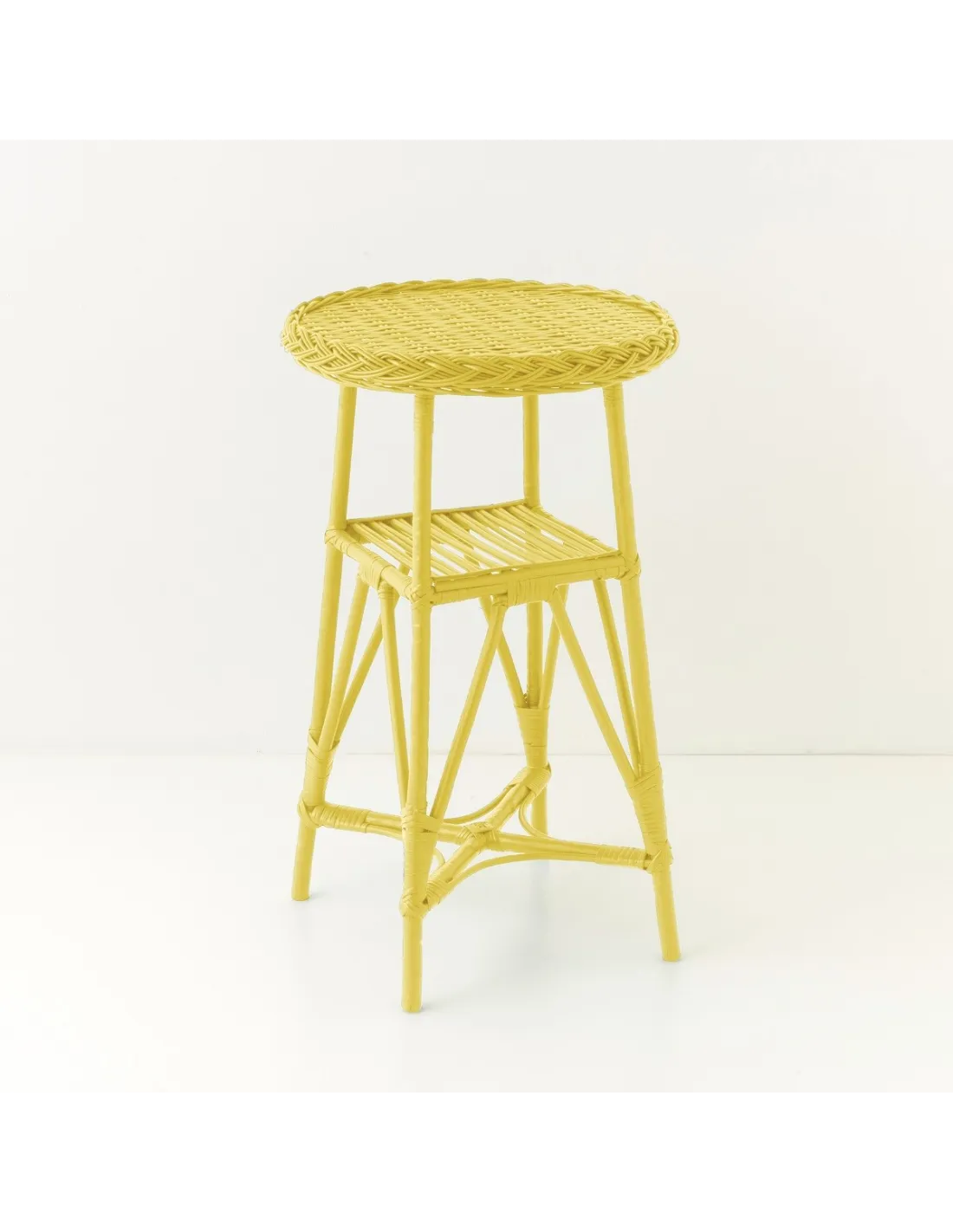 The Mélina willow pedestal, diameter 45, makes an ideal plant holder or light stand. Lightweight and sturdy, it will add that touch of natural charm that our contemporary interiors sometimes lack. Its 25x25 cm to 50 cm high sub-tray is perfect for storing small objects. The top of the main tray is woven from wicker splints in the same colour as the rest of the furniture, laid on a wooden support to give the surface stability and rigidity. It is available here in several matte lacquer colors, with a finish made to order (delivery time approximately 15 days to 3 weeks) in France.