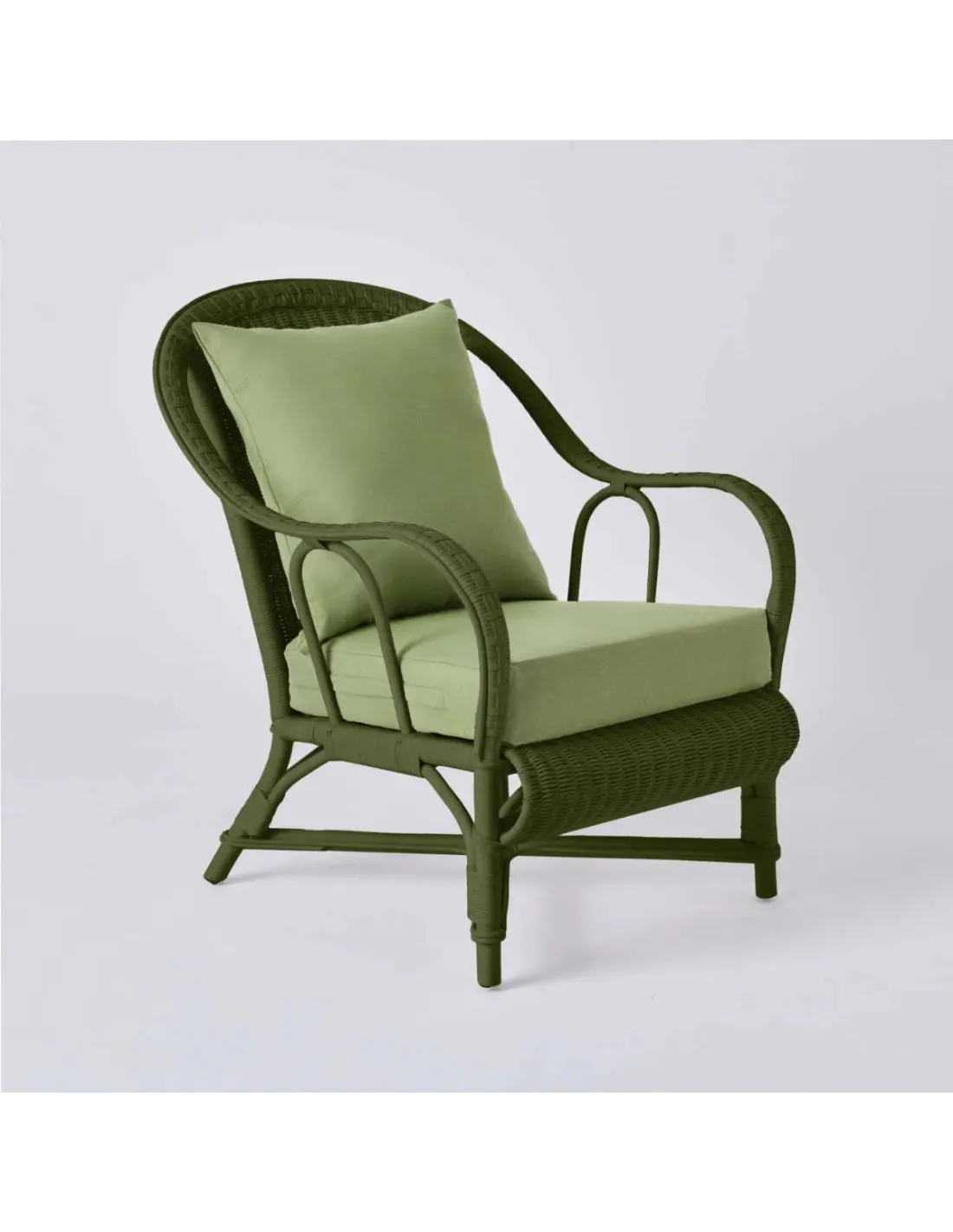 PRIMAVERA collection armchair in bronze green lacquered rattan with green fabric