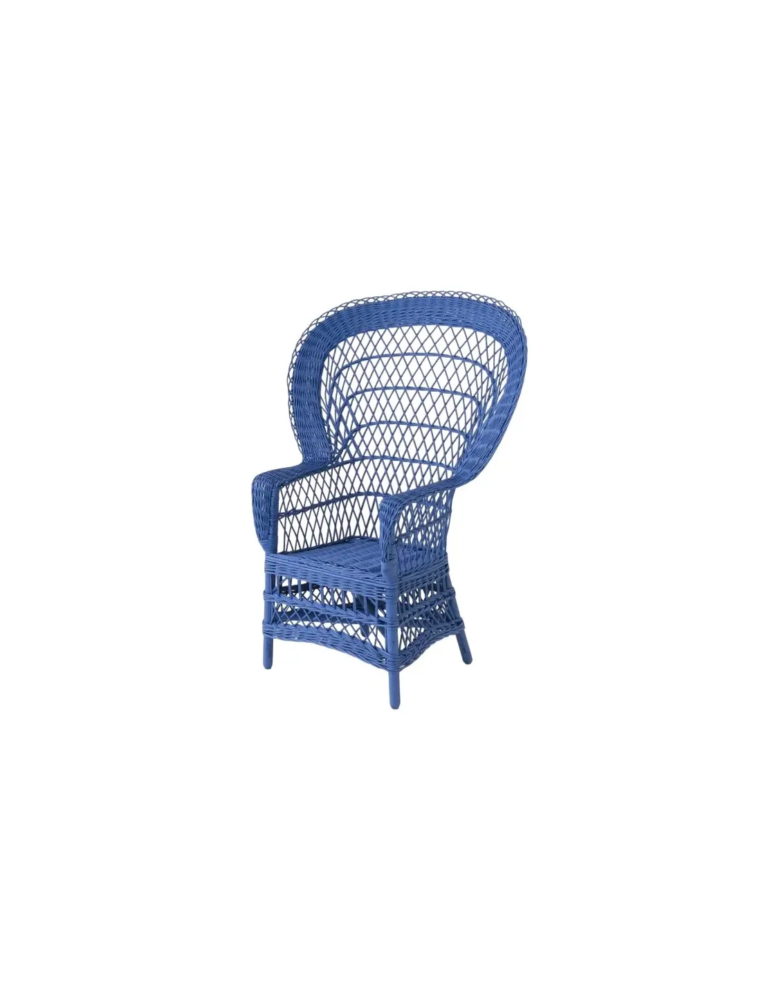 With its striking backrest, this willow peacock chair is reminiscent of the famous Emmanuelle chair. Less exotic, more Mediterranean (made in Spain), it is above all more comfortable and more stable. It is a proper armchair in which you will enjoy relaxing, and not just a decorative item: a high backrest to rest your head on, a medium-height seat (43cm) and sturdy armrests that make it easy to stand up. Despite its substantial dimensions, it weighs just 7 kg. It is available here in a lacquered finish, in our selection of colours. A matching cushion is available as an option.