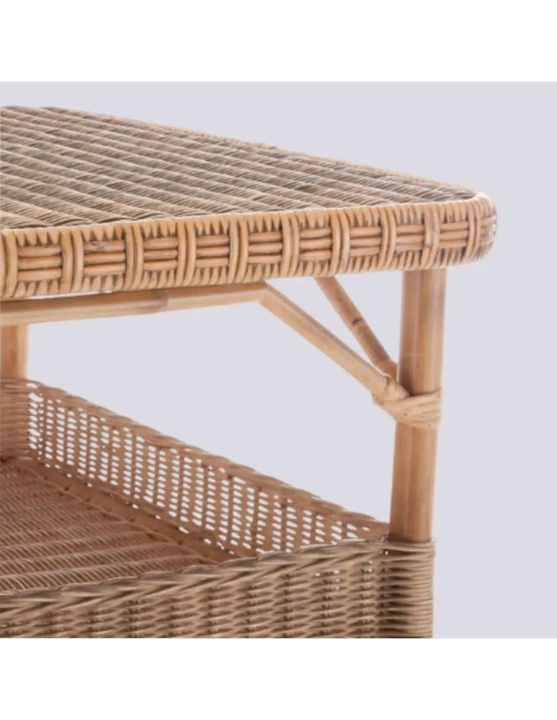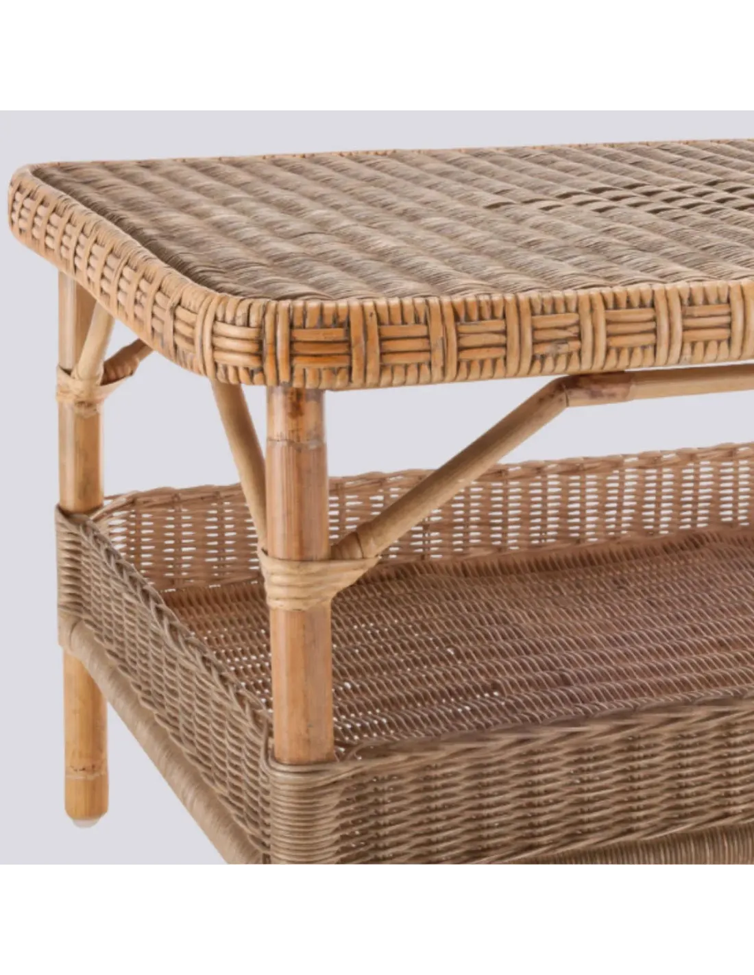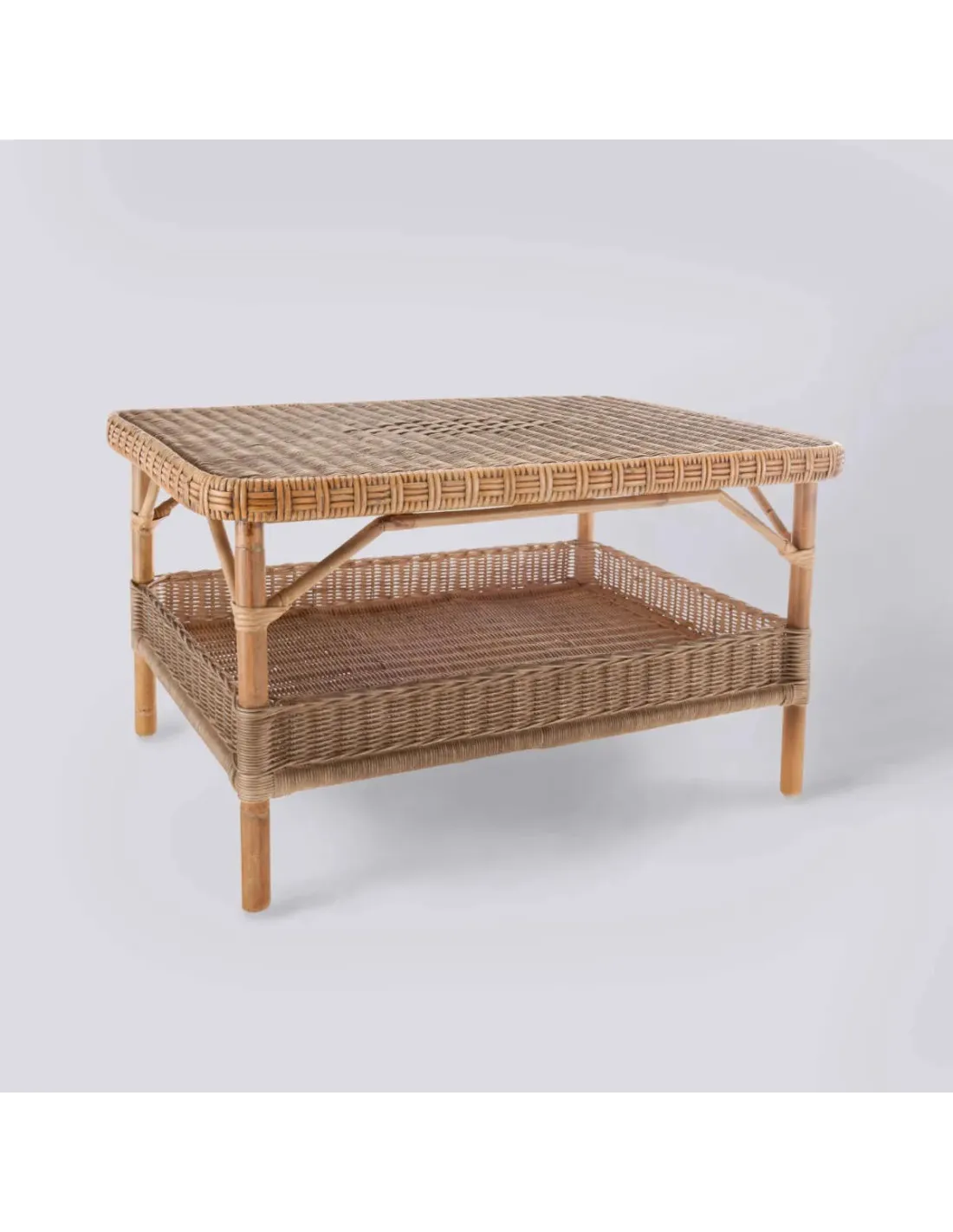 Following in the grand tradition of our KOK grand-père armchairs, our Nantucket natural rattan coffee tables echo their main features: the rattan frame, the two tiers woven in round rattan core, with the traditional "diamond" motif on the top and the split rattan woven just like an armchair armrest. The lower compartment is bordered by a small gallery that will prevent objects from falling.