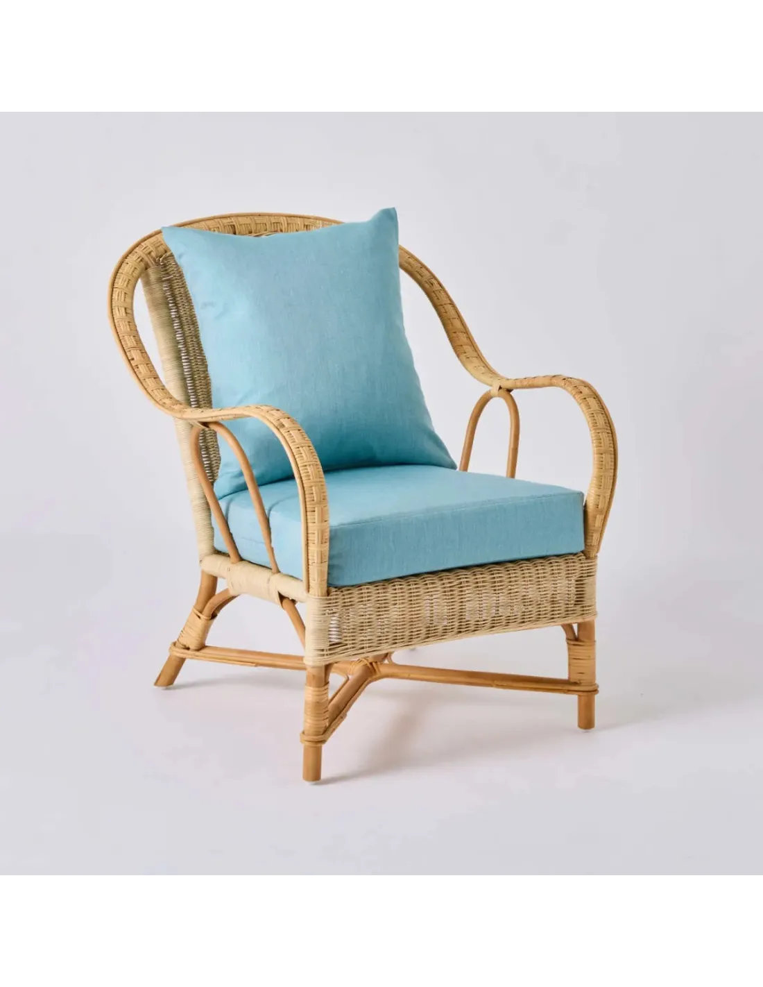 NANTUCKET woven rattan armchair with aqua fabric