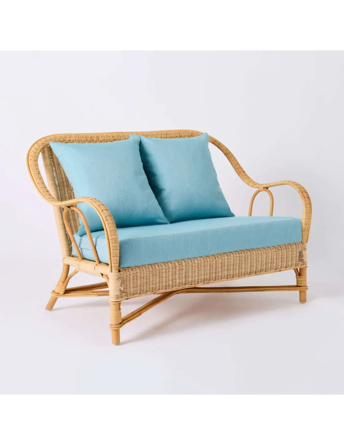 The Nantucket natural rattan sofa is inspired by the famous grand-père armchairs in rattan, but is presented here in a supremely comfortable version. At normal lounge seating height, it comes with fully removable cushions. Lightweight and natural, this sofa is very easy to move, and will make your life easier. It requires little or no maintenance, and can be used in the living room, on a veranda, or even outside if it is not raining. It is not afraid of a little morning dew, but it should be protected in case of heavy rain or prolonged cold.