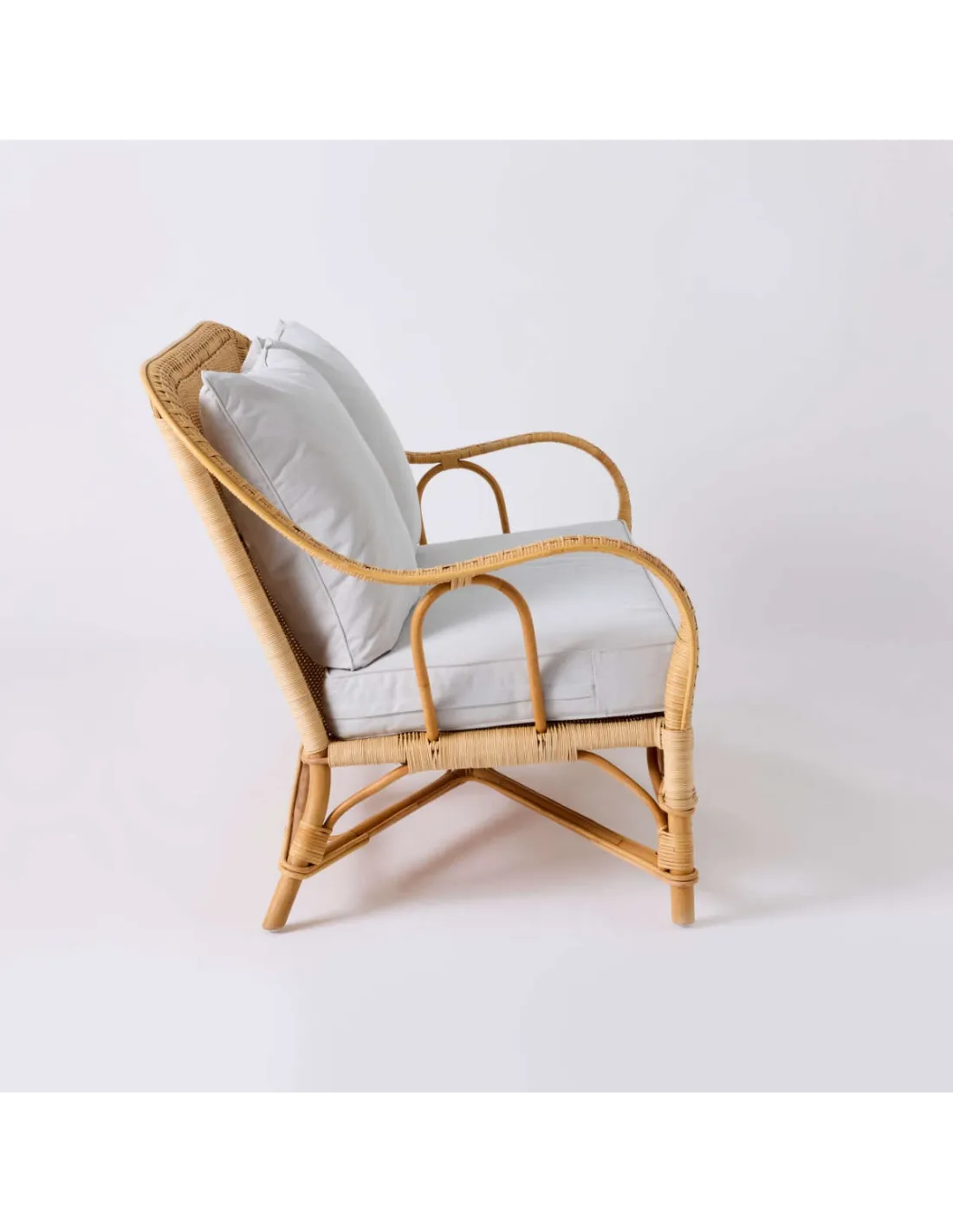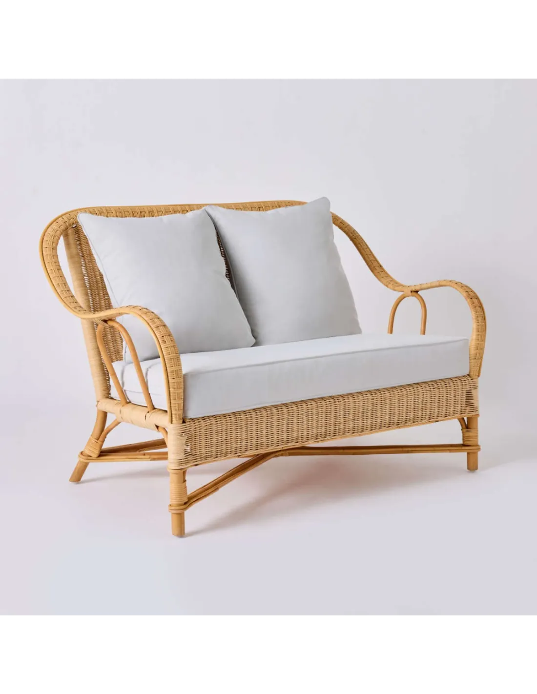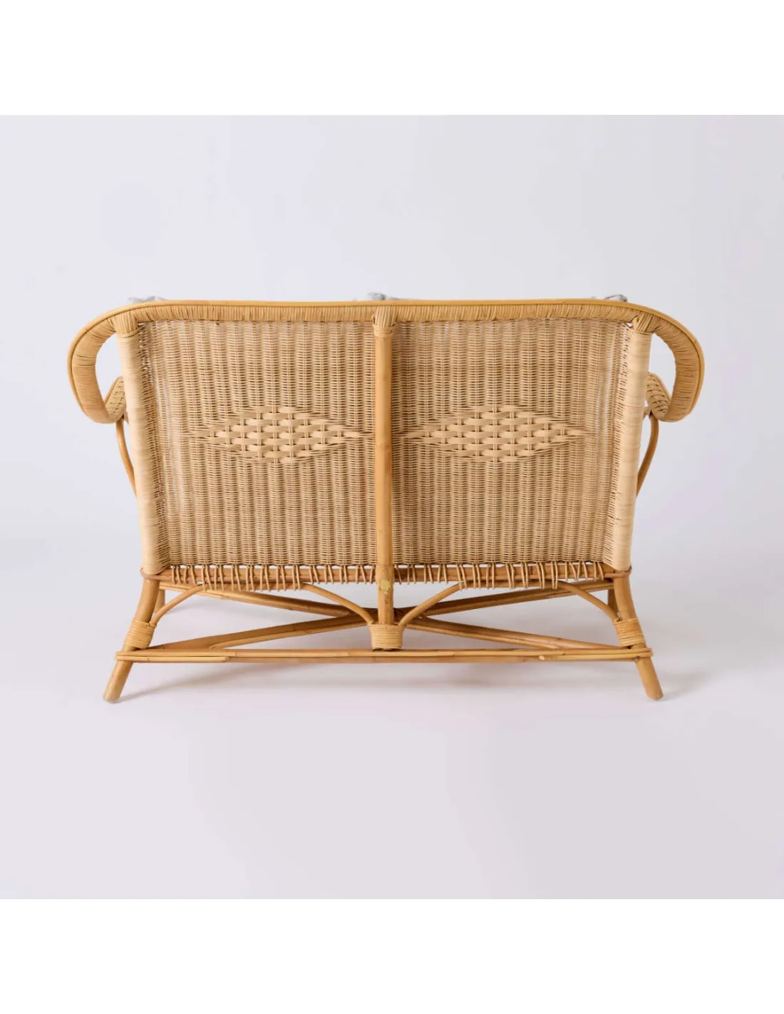 The Nantucket natural rattan sofa is inspired by the famous grand-père armchairs in rattan, but is presented here in a supremely comfortable version. At normal lounge seating height, it comes with fully removable cushions. Lightweight and natural, this sofa is very easy to move, and will make your life easier. It requires little or no maintenance, and can be used in the living room, on a veranda, or even outside if it is not raining. It is not afraid of a little morning dew, but it should be protected in case of heavy rain or prolonged cold.