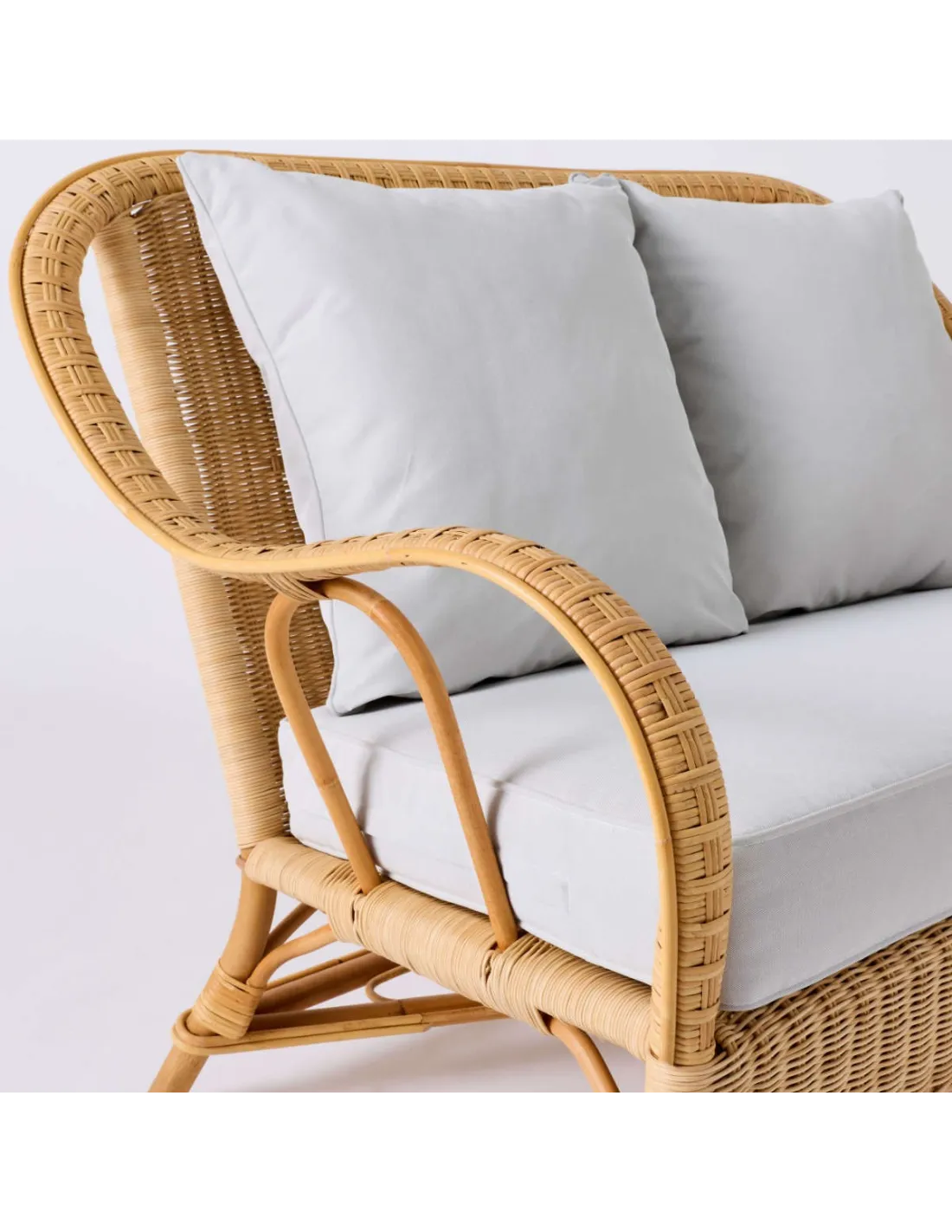 Zoom cushions and natural rattan sofa weave NANTUCKET grandfather collection pearl grey fabric