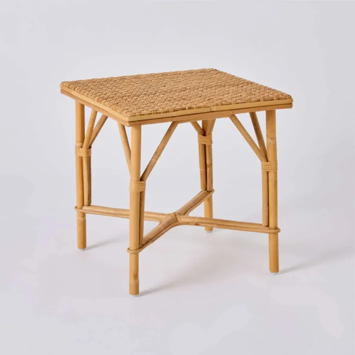 The Grand mère table in natural rattan matches the grand mère rattan lounger, complementing it beautifully as a place to put a magazine, a book, or a small lamp. Its small size, its lightness and its natural simplicity also make it an excellent table to place beside a sofa, or a beautiful bedside table, which you can easily move anywhere you want it.