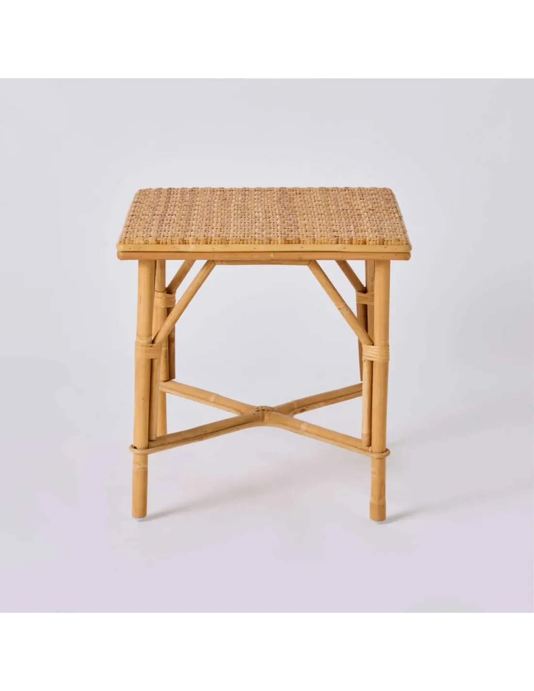 Front view of GRAND-MERE square coffee table in woven natural rattan by Kok Maison