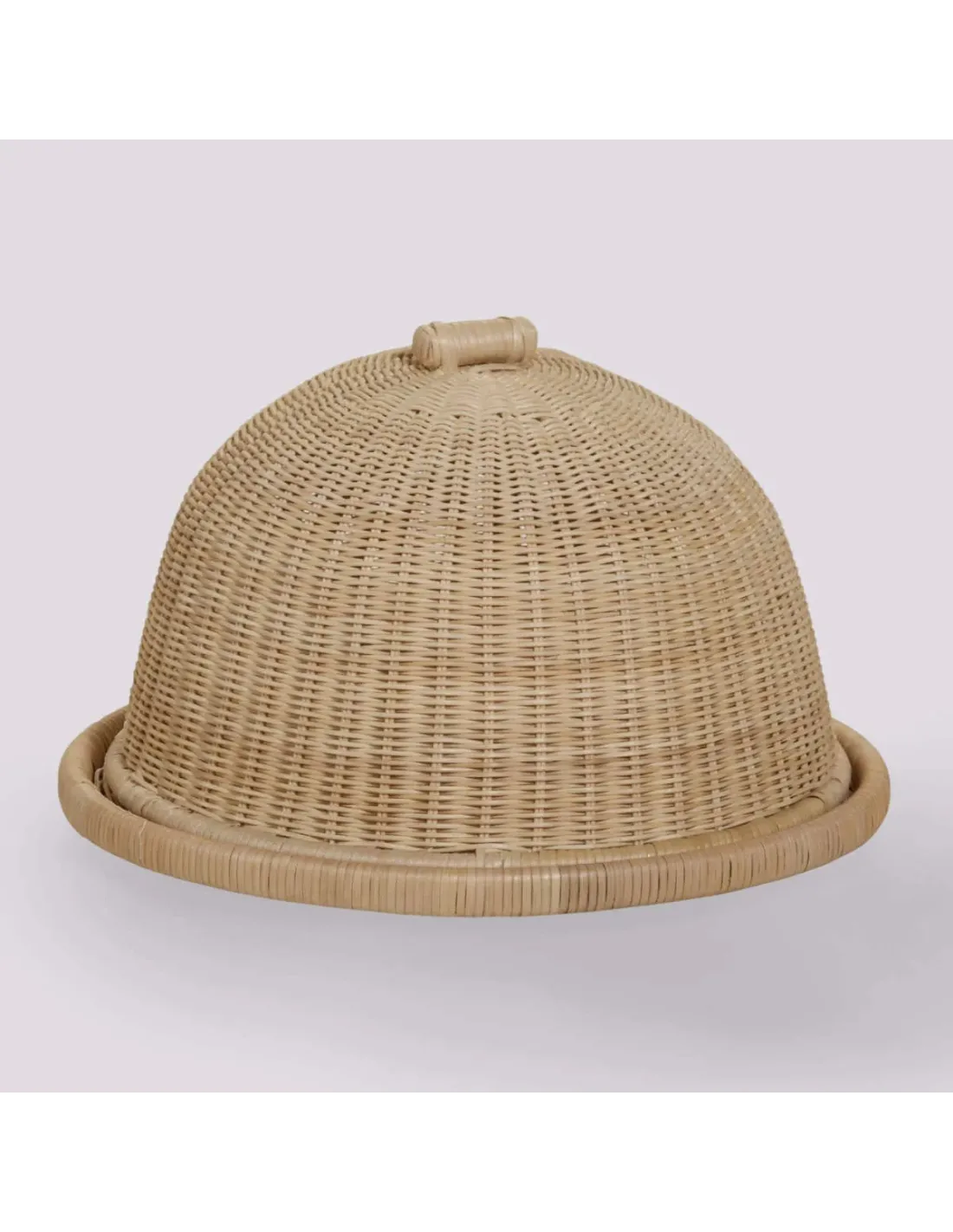 Tray made of natural round rattan core with its own bell-shaped cover. Without coloured edges for this model, it is suitable for all uses and especially for food: cheeses, pies, pastries, fruits etc.