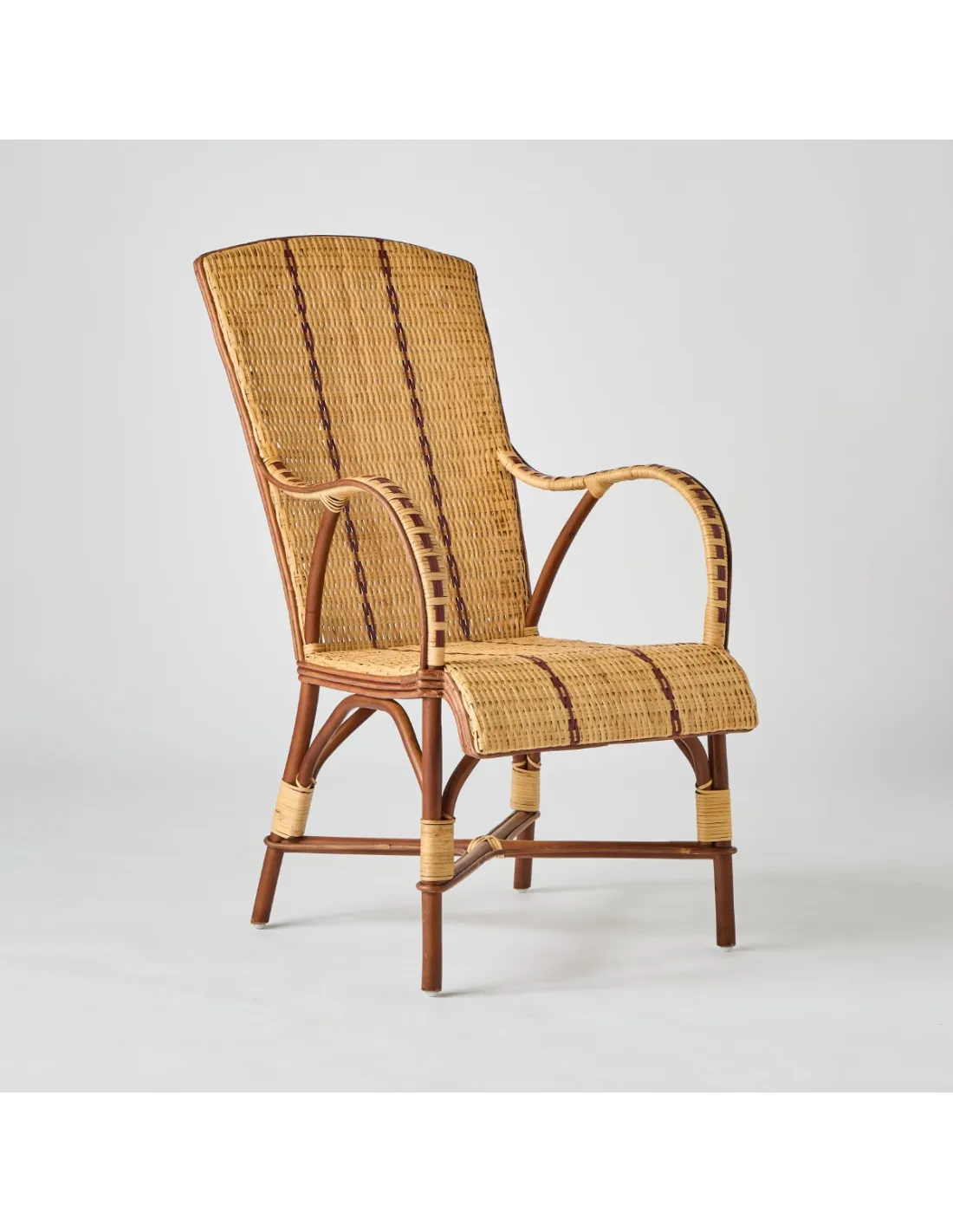 The Bagatelle rattan armchair, here in its high-back version, is an icon of the French rattan of the Belle Époque. You can use it in the living room, on a veranda, in a conservatory, or on a covered terrace on sunny days.
