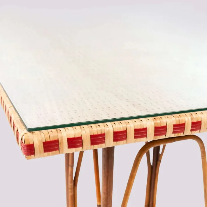 All the charm of the Belle Epoque in this square Bagatelle rattan or Belle Epoque resin pedestal table. Ideal as an occasional table, in a conservatory or on a covered terrace. Here, the protective glass top is available as an option.