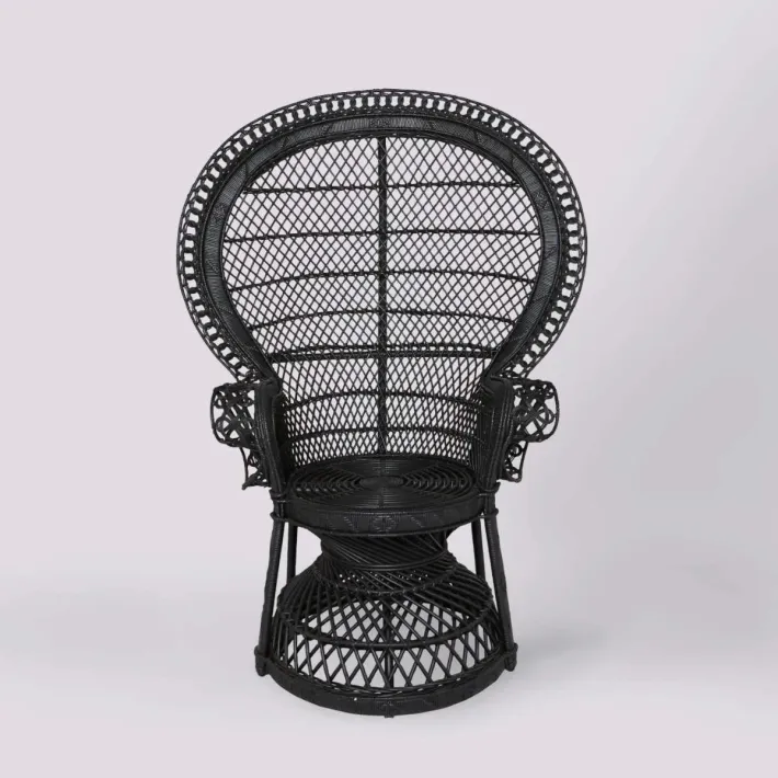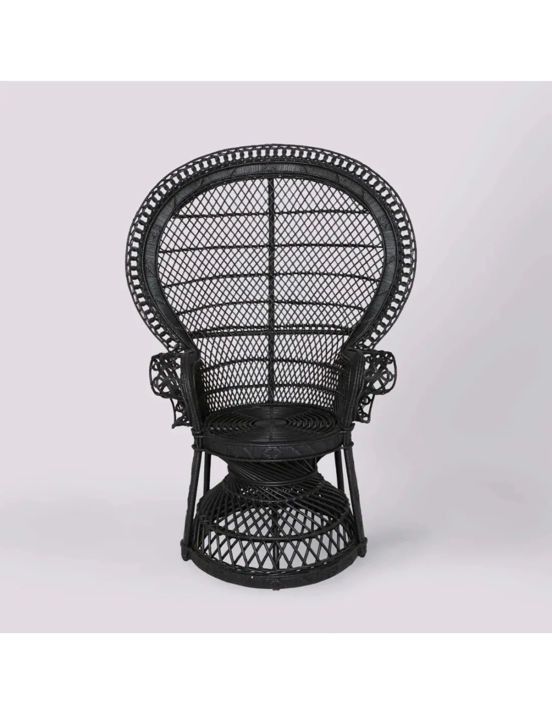 Avant qu'il n'accède à une notoriété planétaire à la sortie du film éponyme, le fauteuil en rotin Emmanuelle était à l'origine un trône polynésien (le fauteuil dit "Pomaré"), d'où son côté imposant, spectaculaire, et radicalement exotique ! Photogénique en diable, il fût d'ailleurs, pour la petite histoire, repris dans de nombreux autres films, antérieurs à Emmanuelle (dès 1931), mais il faut croire qu'il marquât alors moins les esprits, allez savoir pourquoi...