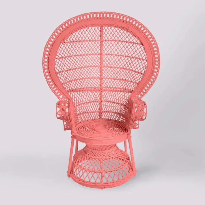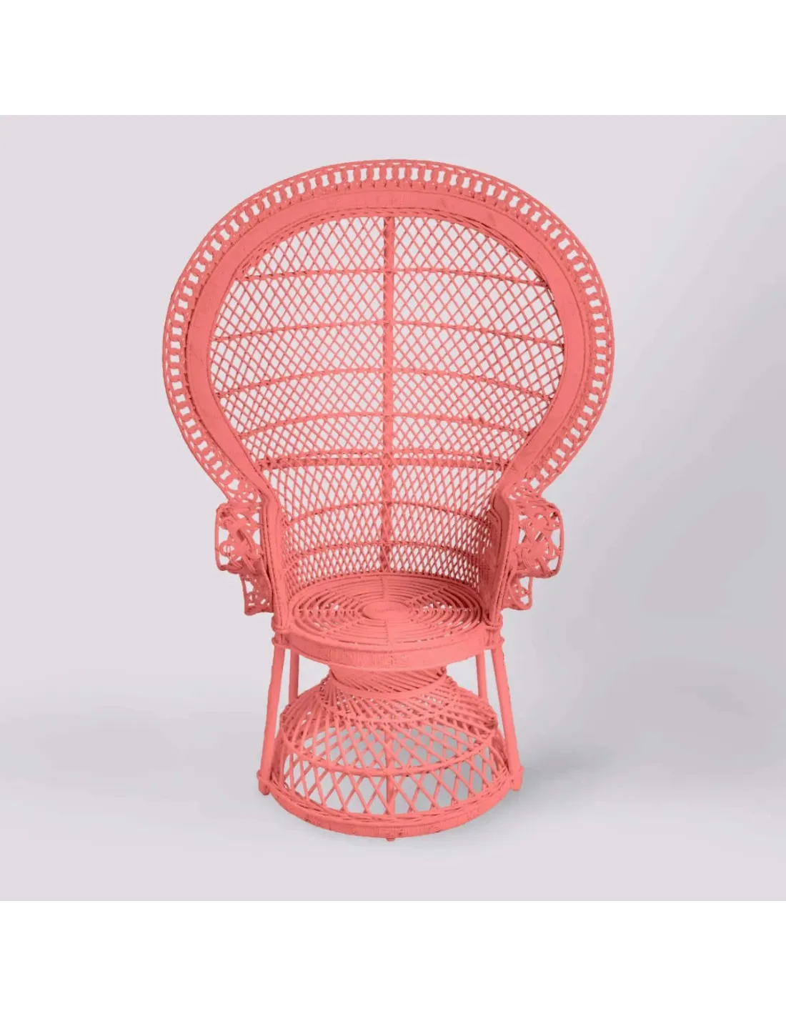 KOK MAISON pris le parti d'en rendre toute la majesté d'origine, sans compromis de dimensions, de finitions, ou de qualité. Opulence et raffinement des tressages en dentelle de rotin, amplitudes des volumes, et piètement élargi en diamètre pour une stabilité améliorée. Le modèle présenté ici est réalisé avec un motif en croisillon, un des plus répandus car pouvant être réalisé avec des baguettes de Buri, une plante du sud-est asiatique, dont on tire des nervures bon marché.Â