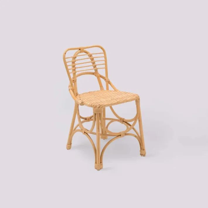 La chaise enfant en rotin Gingko à motif horizontal "horizon" combine une extrême légèreté à une robustesse exceptionnelle, grâce à l'emploi d'une variété de rotin de petit diamètre mais très dense. La disposition des arcades, volutes et ligatures participe à la solidité de l'ensemble autant qu'au design du produit. Lauriane Beaunier et Aurélien Veyrat se sont inspirés des méthodes traditionnelles indonésiennes, où rien n'est superflu. Résultat, des lignes gracieuses et graciles, n'utilisant que le strict nécessaire d'un matériau 100% naturel. Une approche qui se prête bien à l'extrapolation en modèle réduit d'un produit adulte.