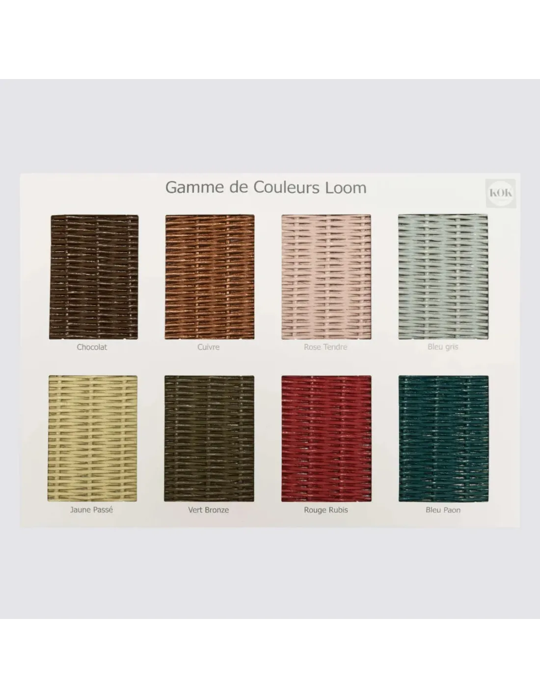 Ici les plaquettes correspondant à notre collection de mobilier en Lloyd Loom et Grand-Père laqué avec les couleurs suivantes :Â
