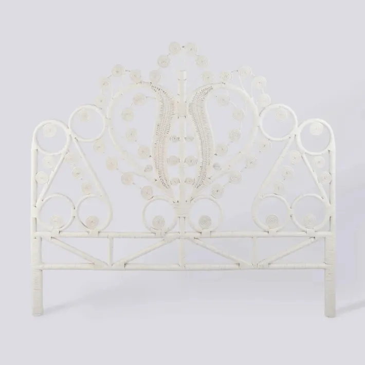 La tête de lit rotin Maharaja est la réédition d'un modèle ancien très à la mode dans les années 70. Les volutes délicates, une véritable dentelle de rotin, s'inspirent de motifs hindous et montent très haut contre le mur pour vous transporter dans l'ambiance magique des palais des Maharajas. La tête de lit rotin Maharaja est de fabrication indonésienne, sous la supervision des Ets KOK.