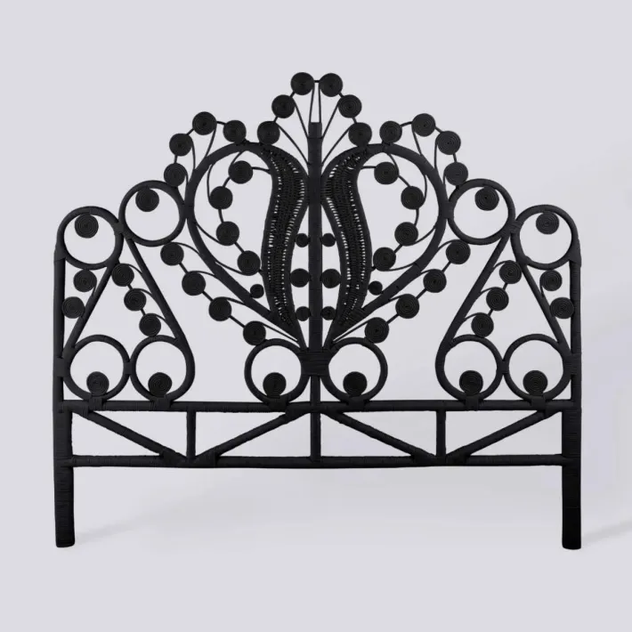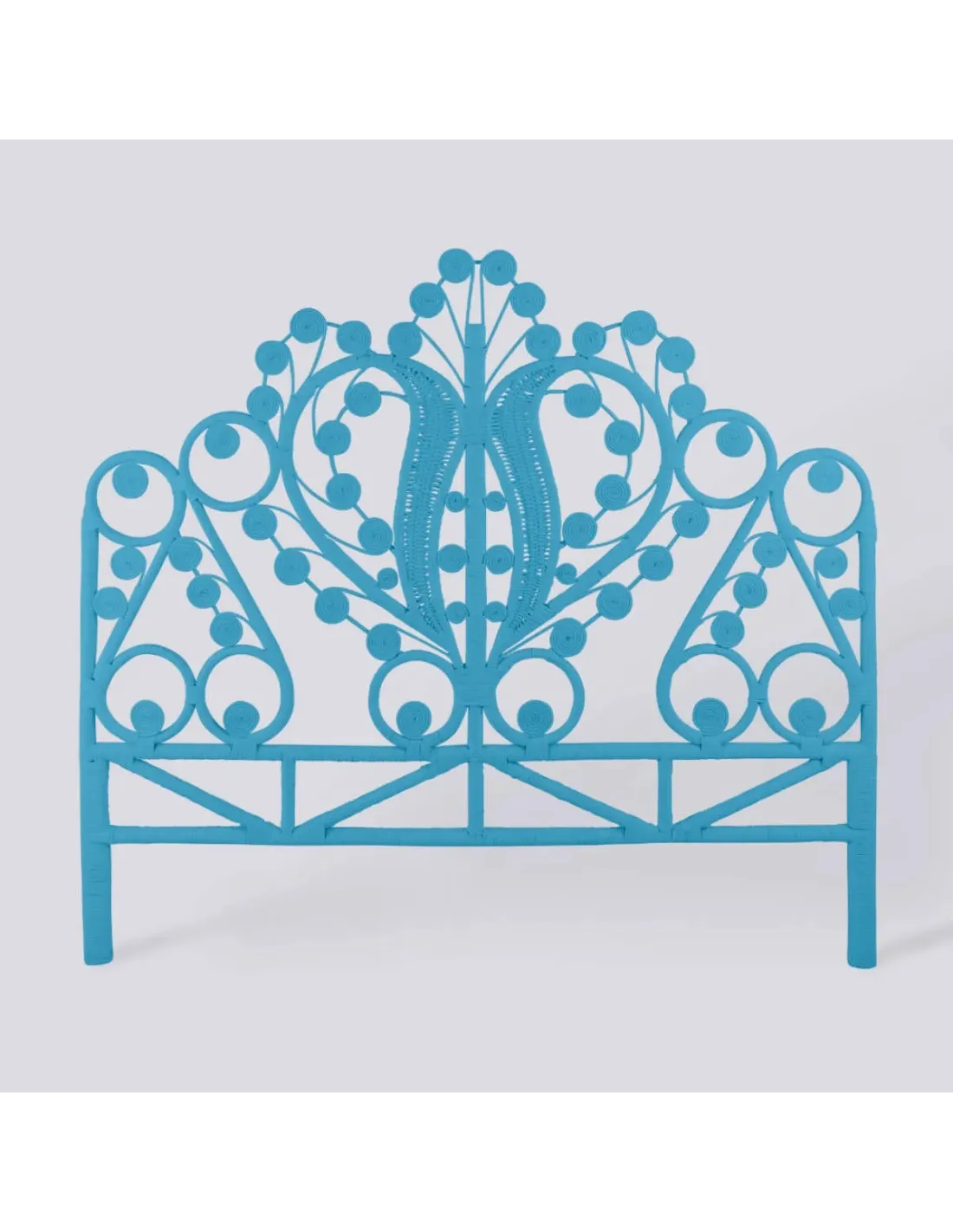 La tête de lit rotin Maharaja est la réédition d'un modèle ancien très à la mode dans les années 70. Les volutes délicates, une véritable dentelle de rotin, s'inspirent de motifs hindous et montent très haut contre le mur pour vous transporter dans l'ambiance magique des palais des Maharajas. La tête de lit rotin Maharaja est de fabrication indonésienne, sous la supervision des Ets KOK.