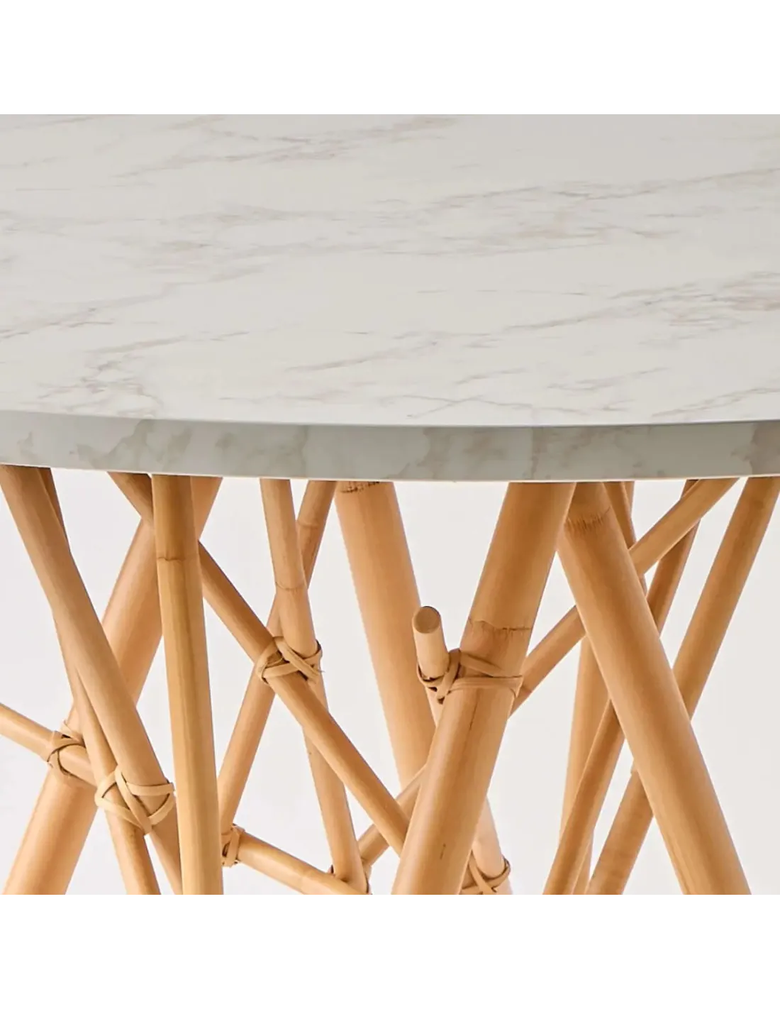 - Pied en rotin naturel, plateau stratifié effet marbre blanc naturel.