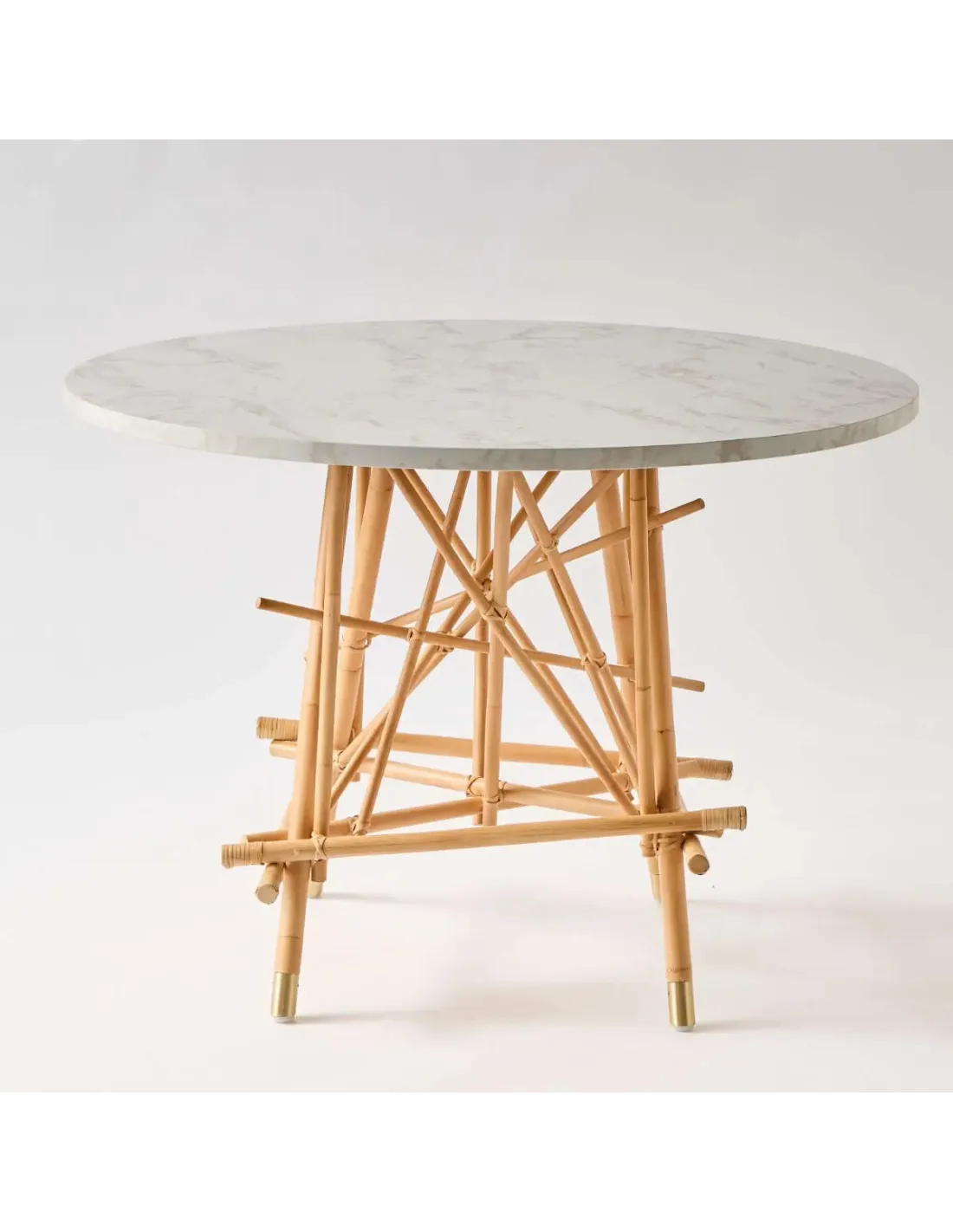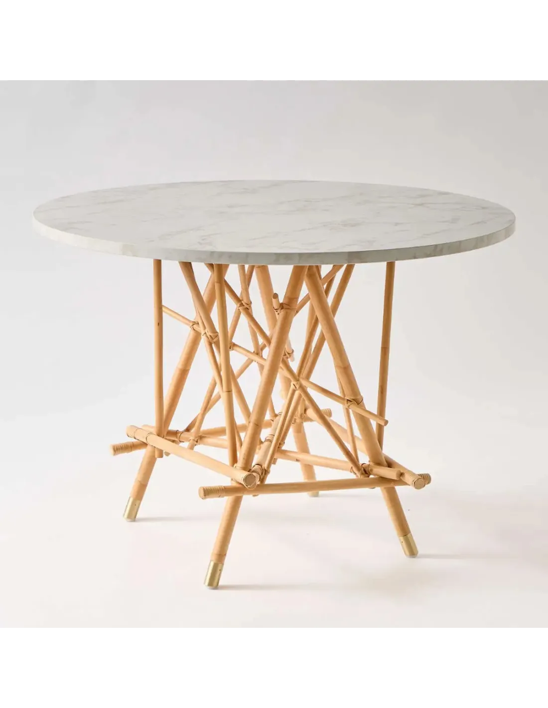 A la façon d'un échafaudage asiatique en bambou, la table ronde en rotin Mikado est constituée d'un montage apparemment aléatoire de canne de rotin naturel, comme si l'on avait jeté des baguettes de mikado pour commencer une partie. Une construction aléatoire en apparence seulement. Tout est bien étudié pour assurer une excellente stabilité selon un plan bien déterminé. Effet "pont de la rivière Kwaï" garanti ! Son grand plateau stratifié effet marbre blanc de 120 cm de diamètre, peut recevoir de 5 à 6 convives. Le stratifié "effet marbre" se marie très bien avec le rotin naturel et sera très facile d'entretien. Sa surface lisse et veloutée ne craint pas les taches (se nettoie d'un coup d'éponge), et ne se raye pas facilement. Des sièges en rotin de chez KOK Maison seront les bienvenus autour de cette table, ainsi que des chaises contemporaines
