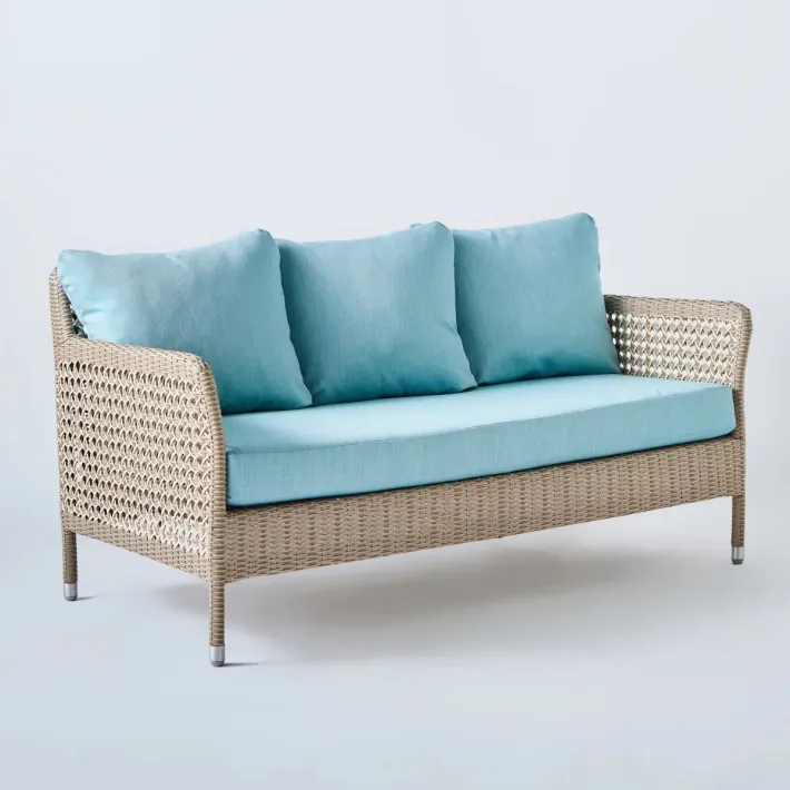Canapé de jardin 2 places en résine Antibes récif tissu aqua