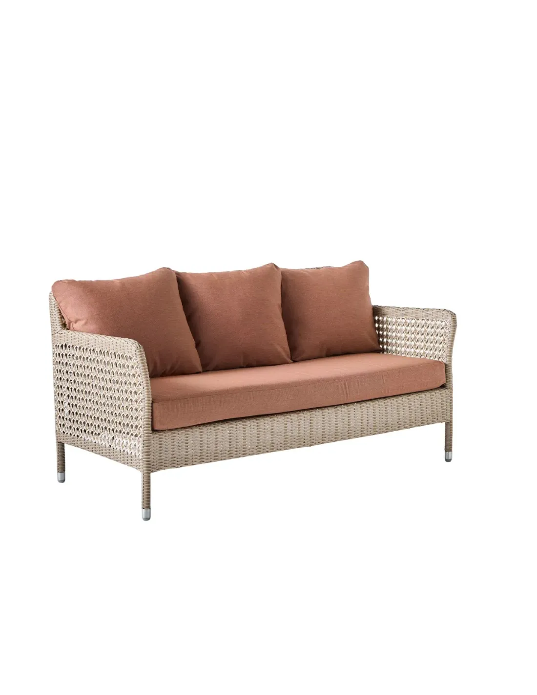 Ambiance canapé de jardin 2 places collection Antibes récif avec tissu terracotta