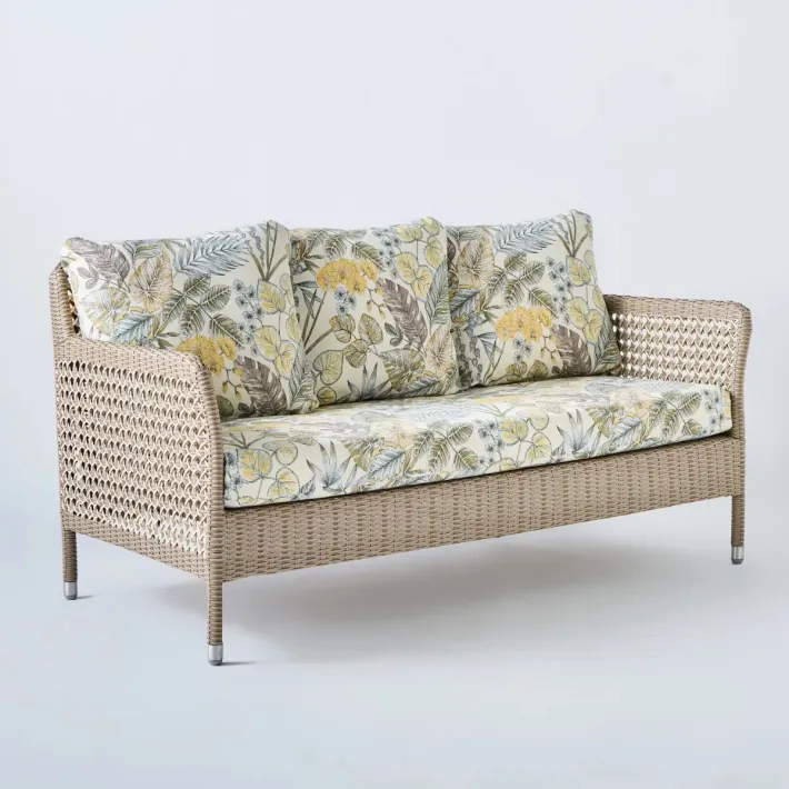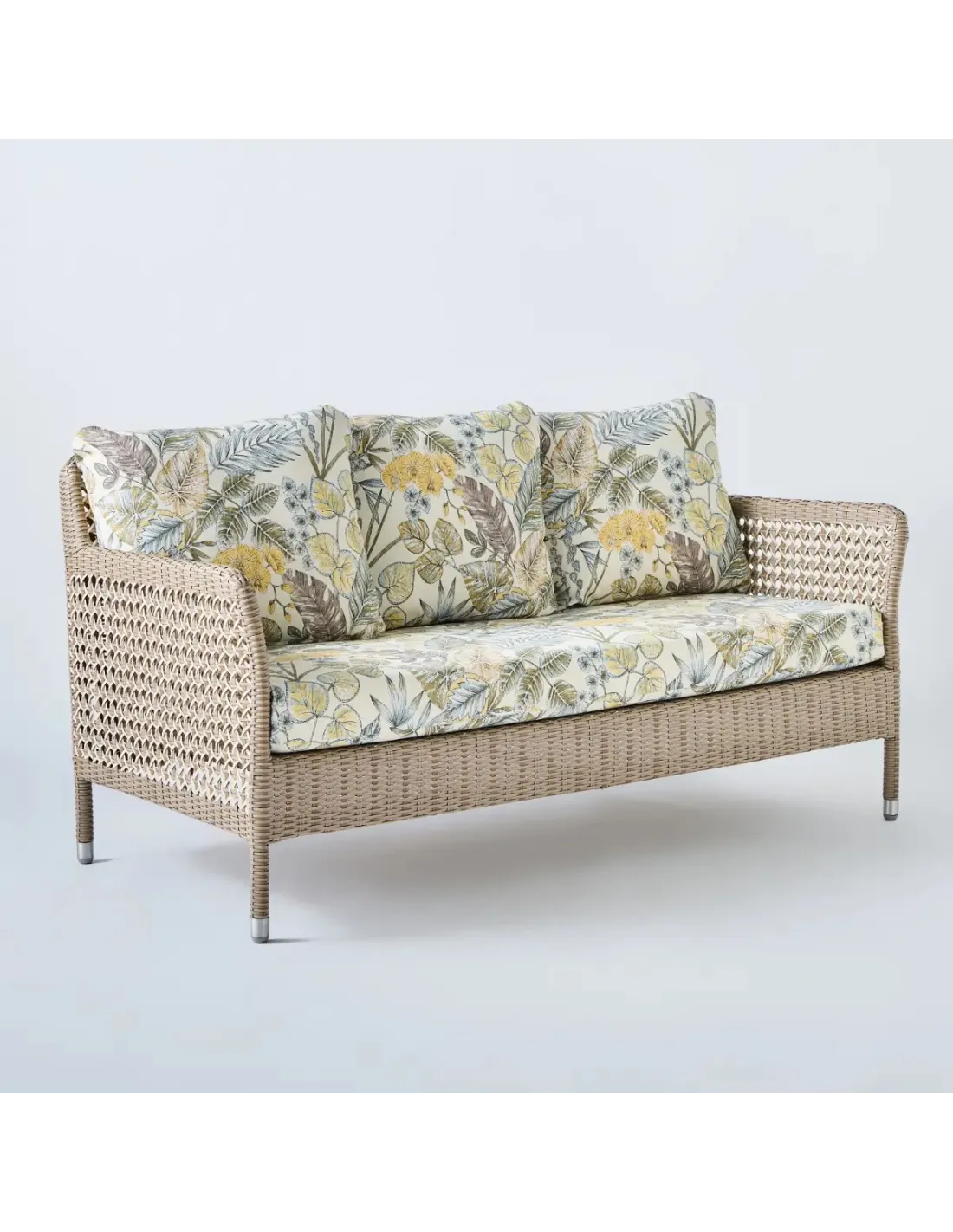Canapé de jardin 2 places en résine Antibes récif tissu bouquet beige