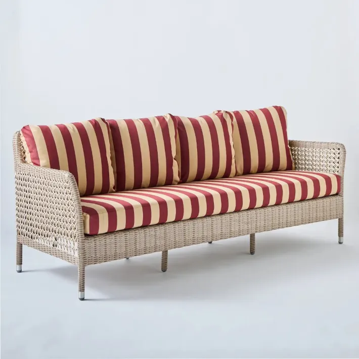 Canapé 3 places pour extérieur Antibes récif tissu rayures bordeaux