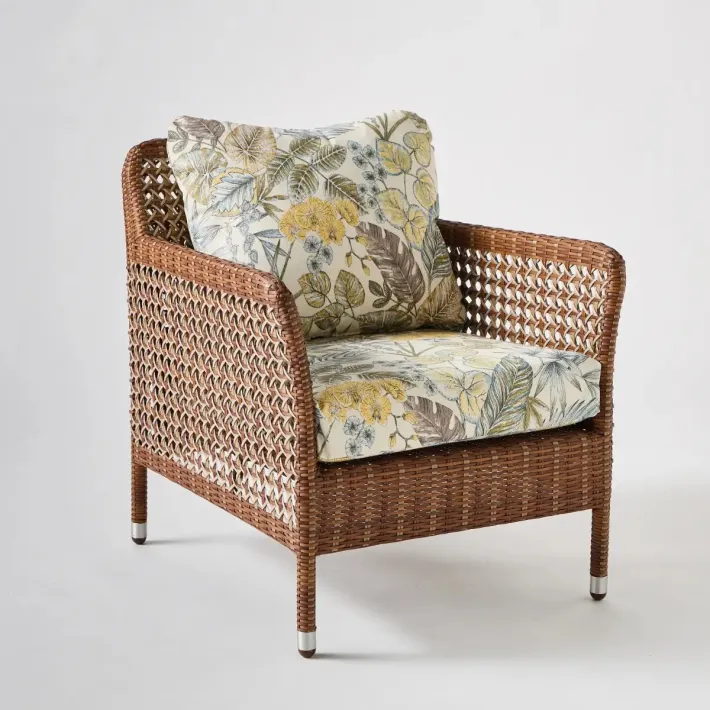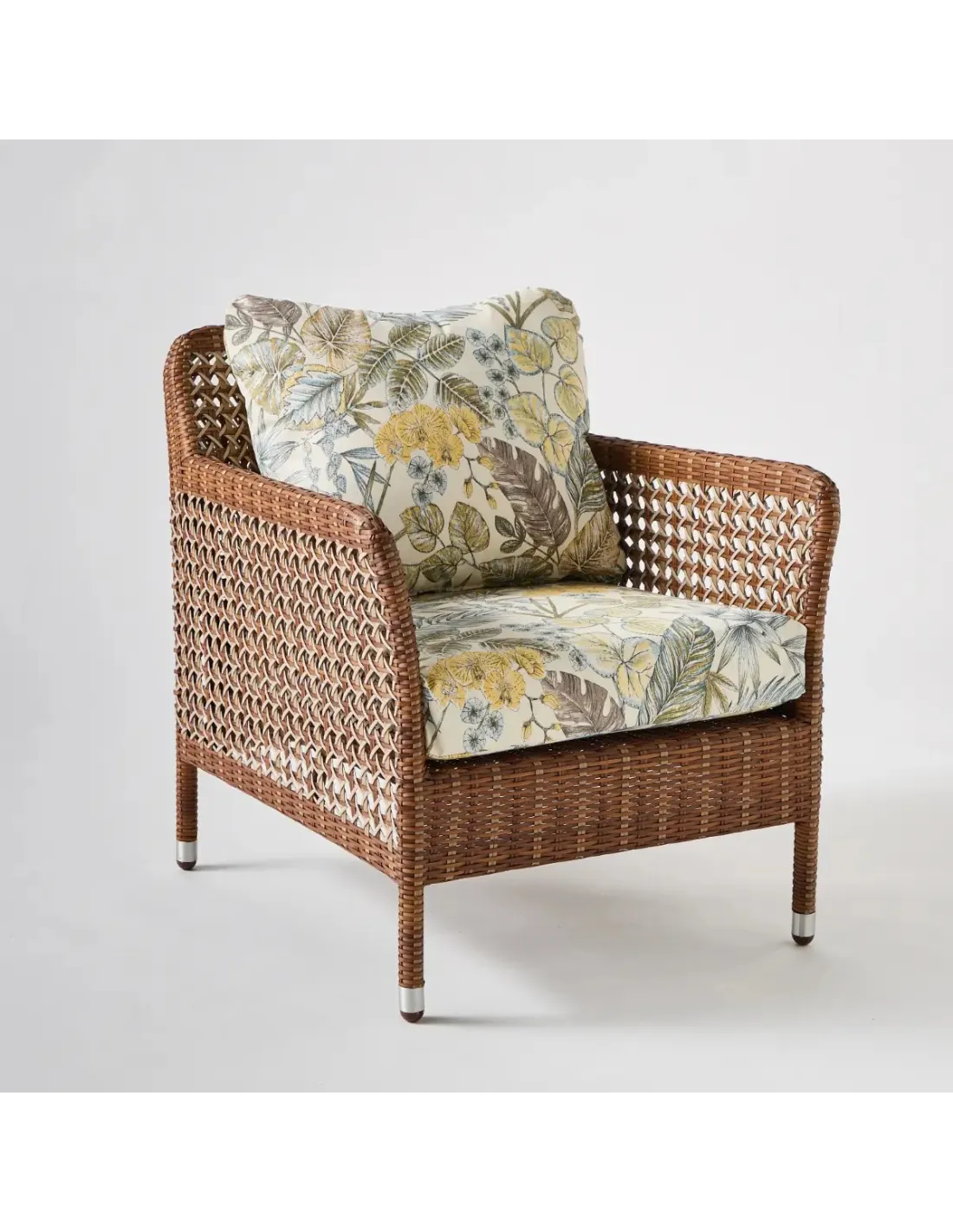 Fauteuil en résine ANTIBES LATERITE tissu bouquet écru