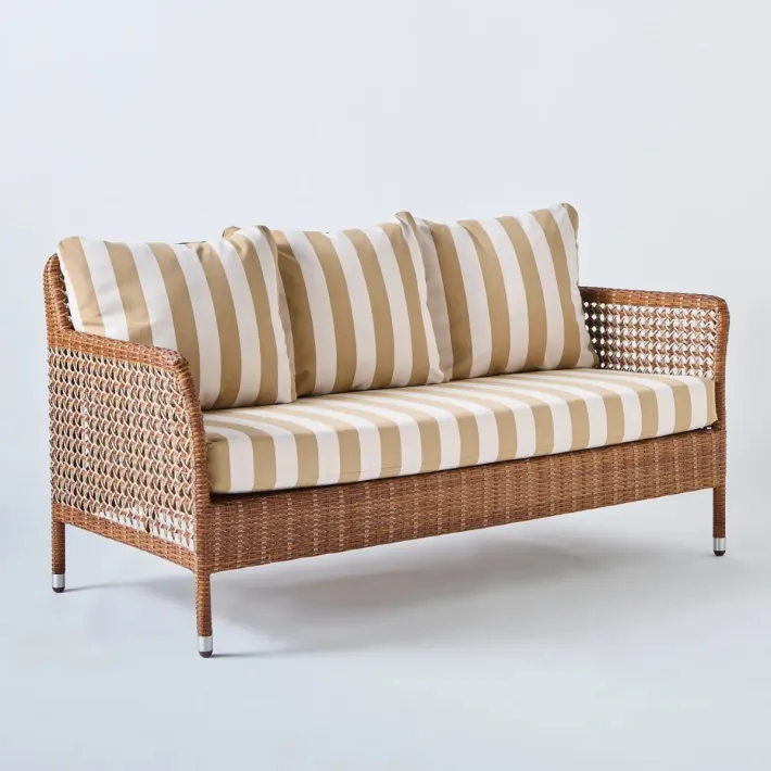 Fauteuil de jardin 2 places Antibes latérite tissu rayure beige