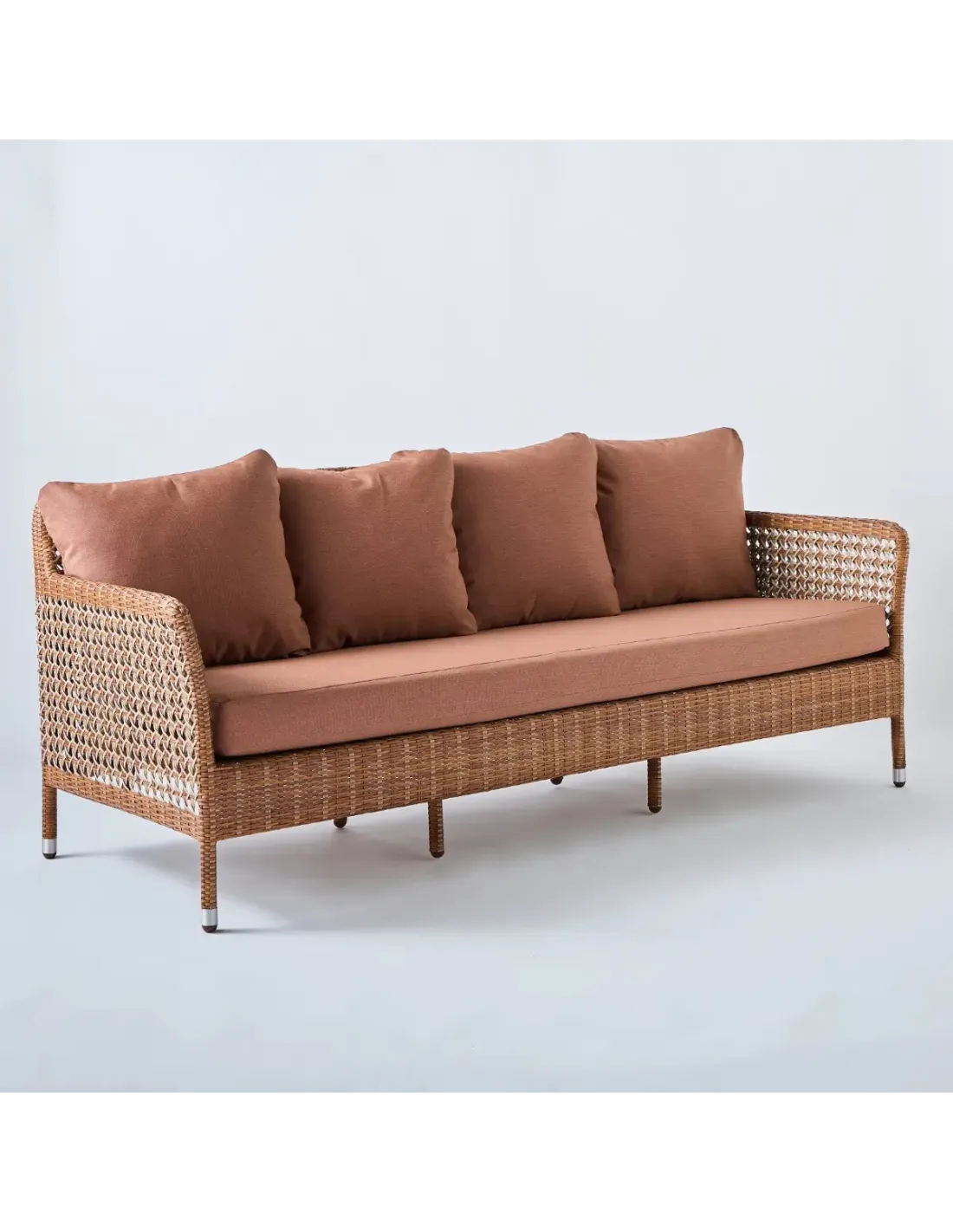 Le canapé 3 places en résine latérite Antibes convient à un usage privé et professionnel (hôtels, cafés, restaurants...) et peut être utilisé sans restriction à l'extérieur.