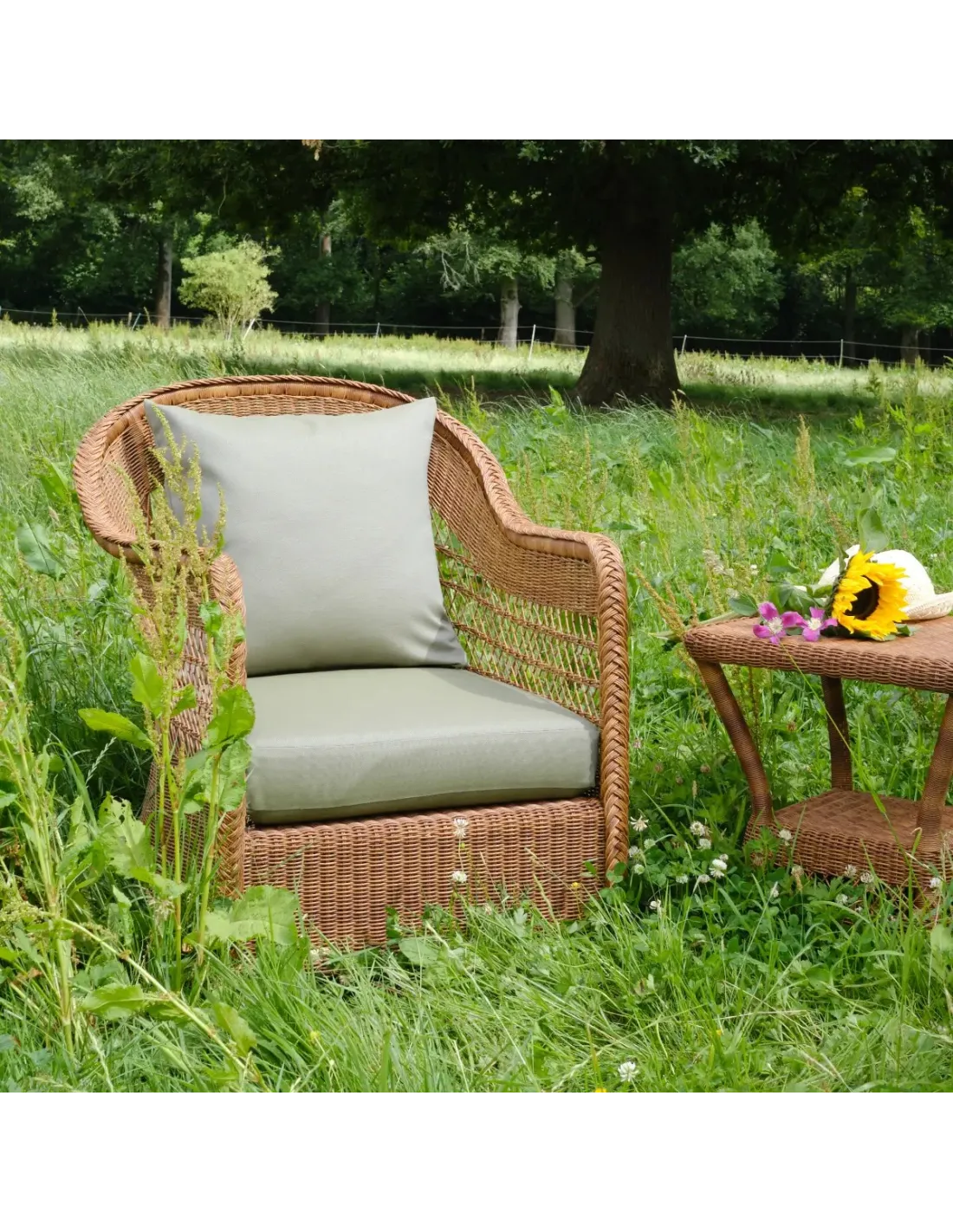 Le fauteuil en rotin d'extérieur BIARRITZ est présenté ici en résine coloris châtaigne avec notre séléction de tissus outdoor. La collection BIARRITZ s'inspire du mobilier en rotin ou en osier que l'on trouvait sous les auvents ou dans les jardins d'hiver des maisons bourgeoises de la fin du XiX ème siècle. On y retrouve en particulier cette façon typique de tresser en "ajouré" dégageant des motifs en losange dans les parties puvertes. L'emploi d'une résine aussi fine que résistante renforce encore l'impression de légèreté et de raffinement de ce tressage exclusif proche d'un travail de dentelle.