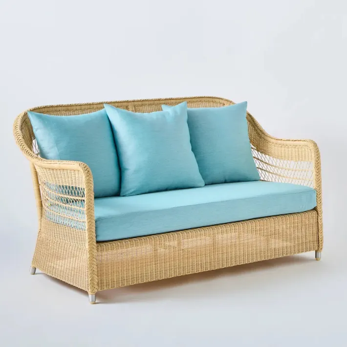 Canapé 2 places Biarritz naturel avec tissu aqua