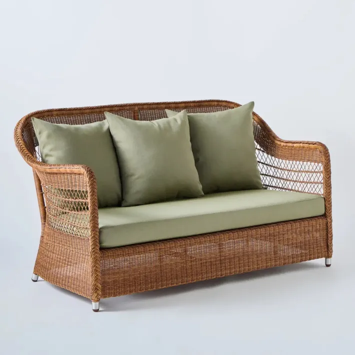 Canapé 2 places en résine pour l'extérieur Biarritz couleur châtaigne tissu algue