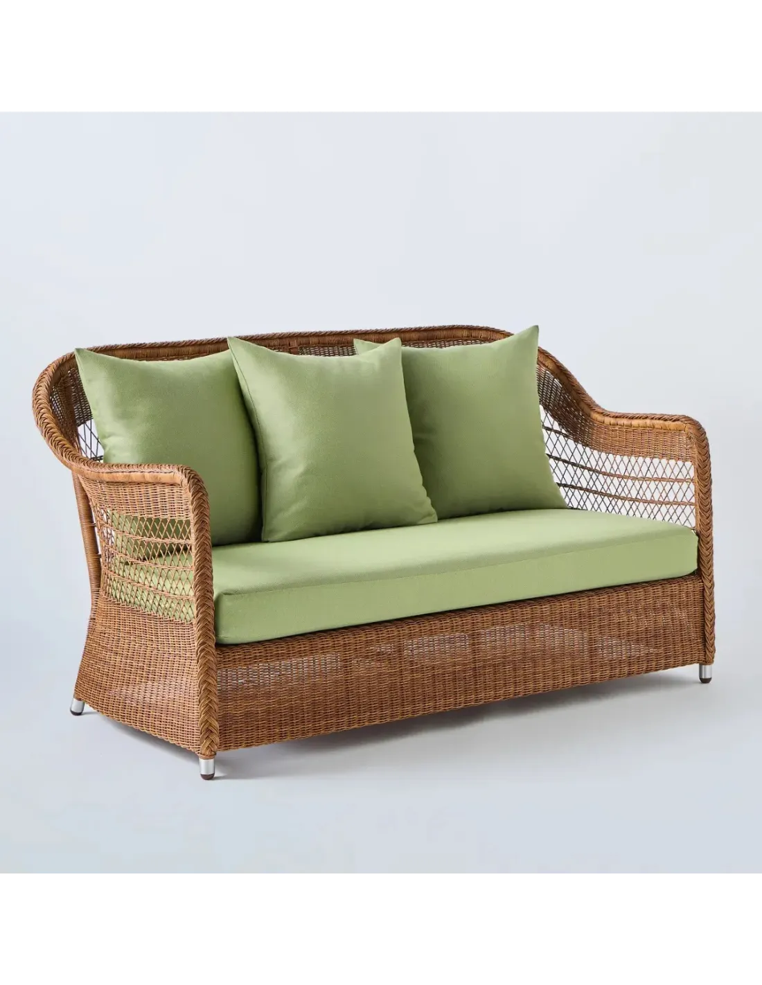 Canapé 2 places en résine pour l'extérieur Biarritz couleur châtaigne tissu vert