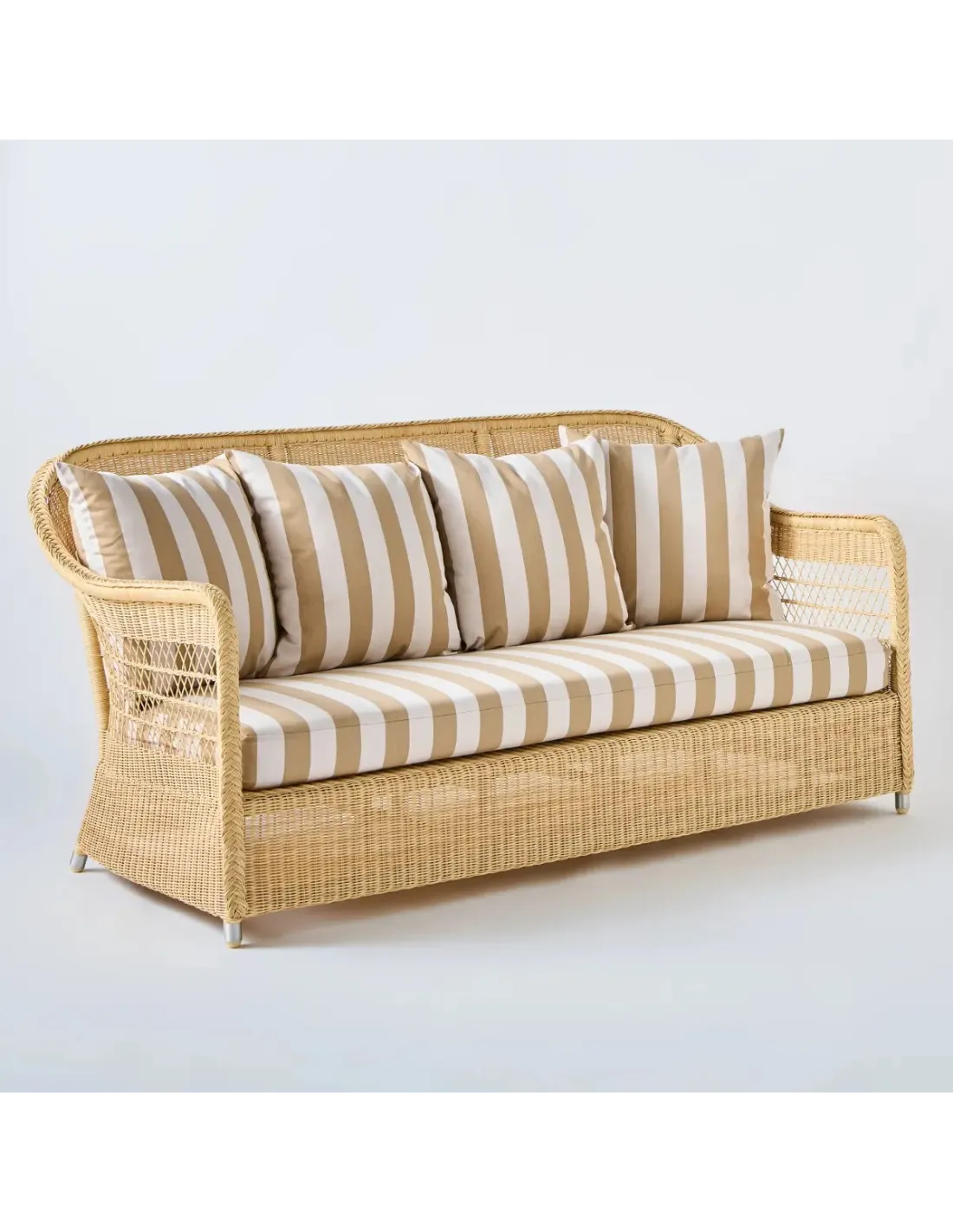 Canapé d'extérieur 3 places Biarritz en résine naturelle tissu rayures beige