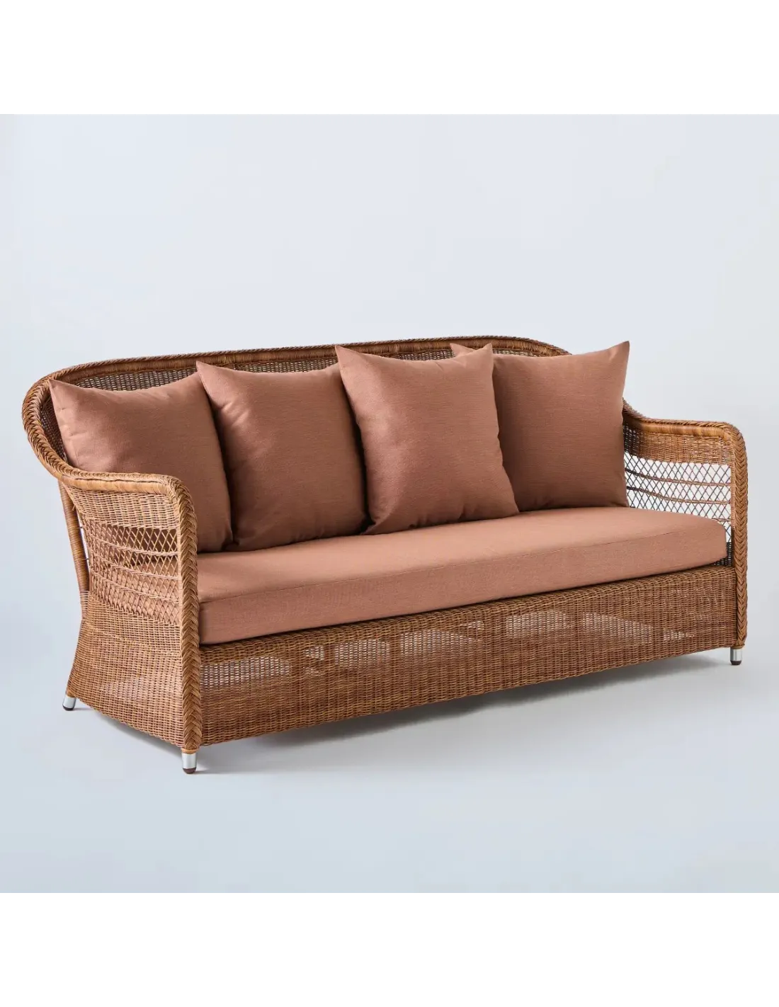 Canapé d'extérieur en résine Biarritz châtaigne tissu terracotta