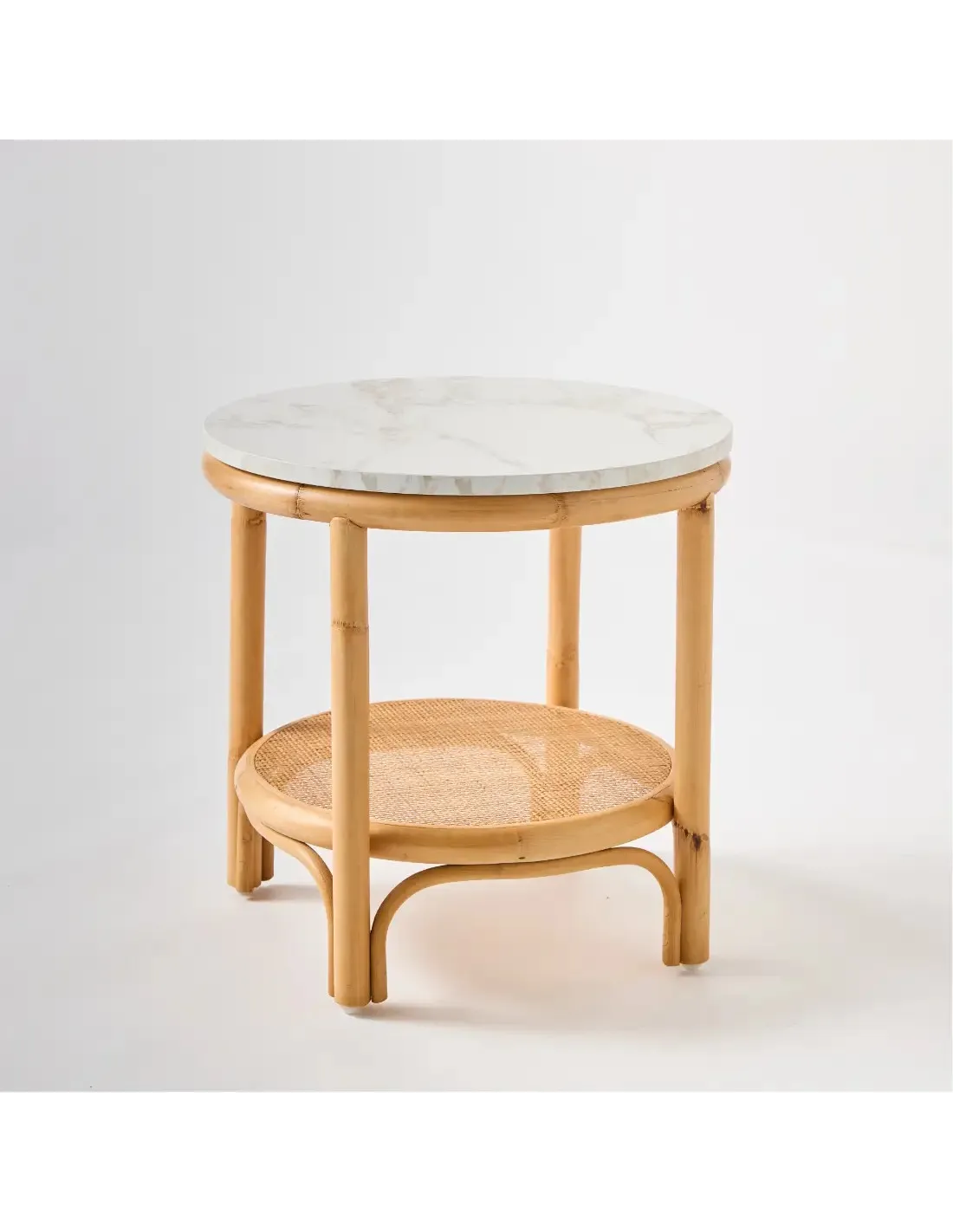 Inspirée des lignes du rotin des années 70-80 la collection Riviera en rotin naturel en reprend les codes graphiques caractéristiques : un rotin de gros diamètre, des formes simples et épurées, du cannage pour le plateau porte-revues. Mais ici, pas de couleurs vives comme à l'époque. Nous avons préféré un traitement "au naturel" qui la rend finalement très actuelle: le rotin est semi-écorcé, pour laisser les nœuds partiellement visibles, une légère coloration ambrée pour uniformiser l'ensemble et un vernis satiné transparent. Cette table basse en rotin cossue et intemporelle sera autant à l'aise dans un univers "véranda" ou "jardin d'hiver" que parmi du mobilier contemporain qu'elle contribuera à réchauffer. Pour la rendre encore plus raffinée, nous l'avons équipée ici d'un plateau en stratifié, décor marbre blanc ou marbre noir. Le stratifié ou HPL (high pressure laminated) est ce dont on fait les plans de travail de cuisine, il est particulièrement résistant et facile d'entretien. Chic et pratique.