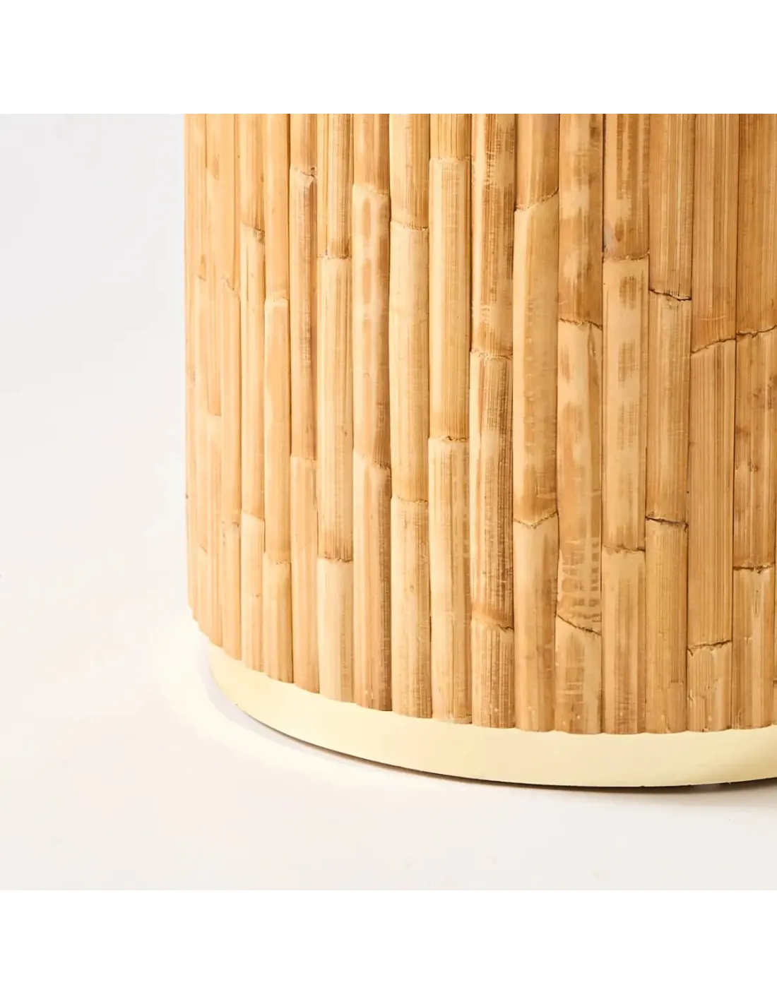 Détail pied de table ronde de repas en rotin Riviera
