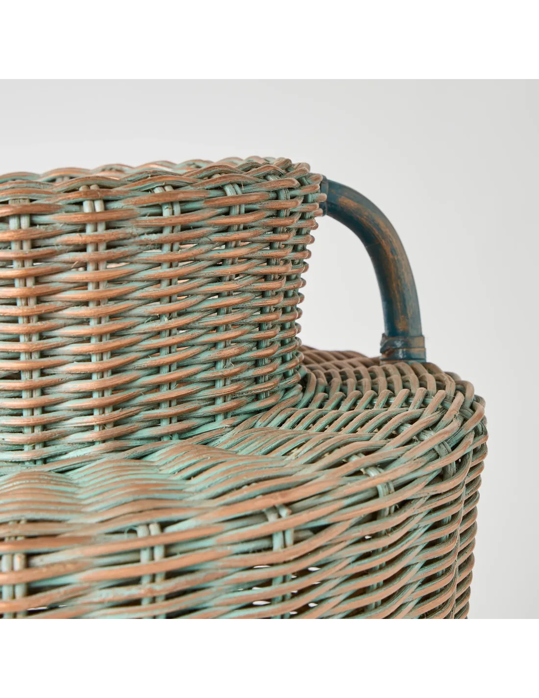 Une pièce rare par la finesse de son tressage en moelle de rotin et par sa patine turquoise originale.